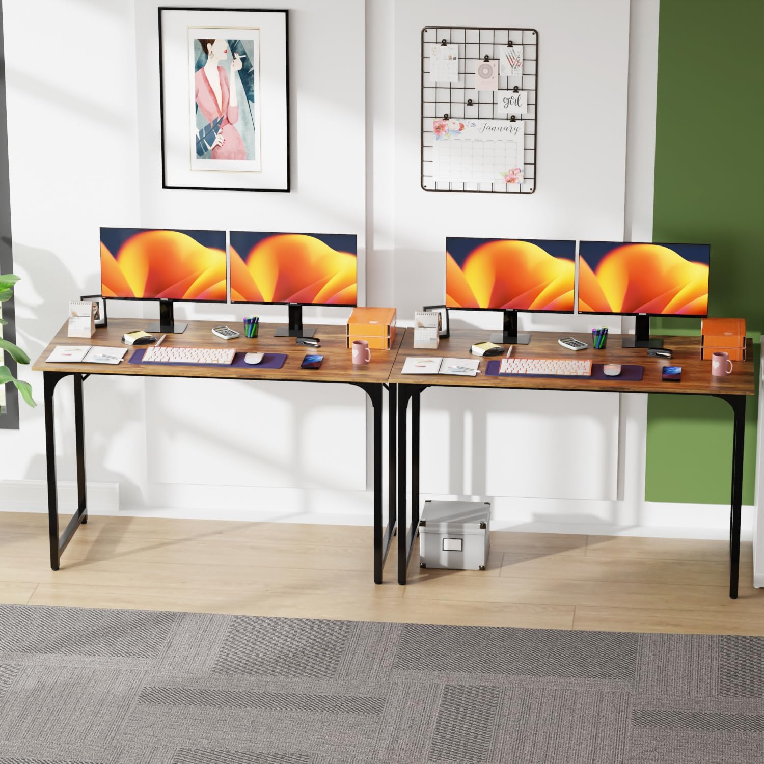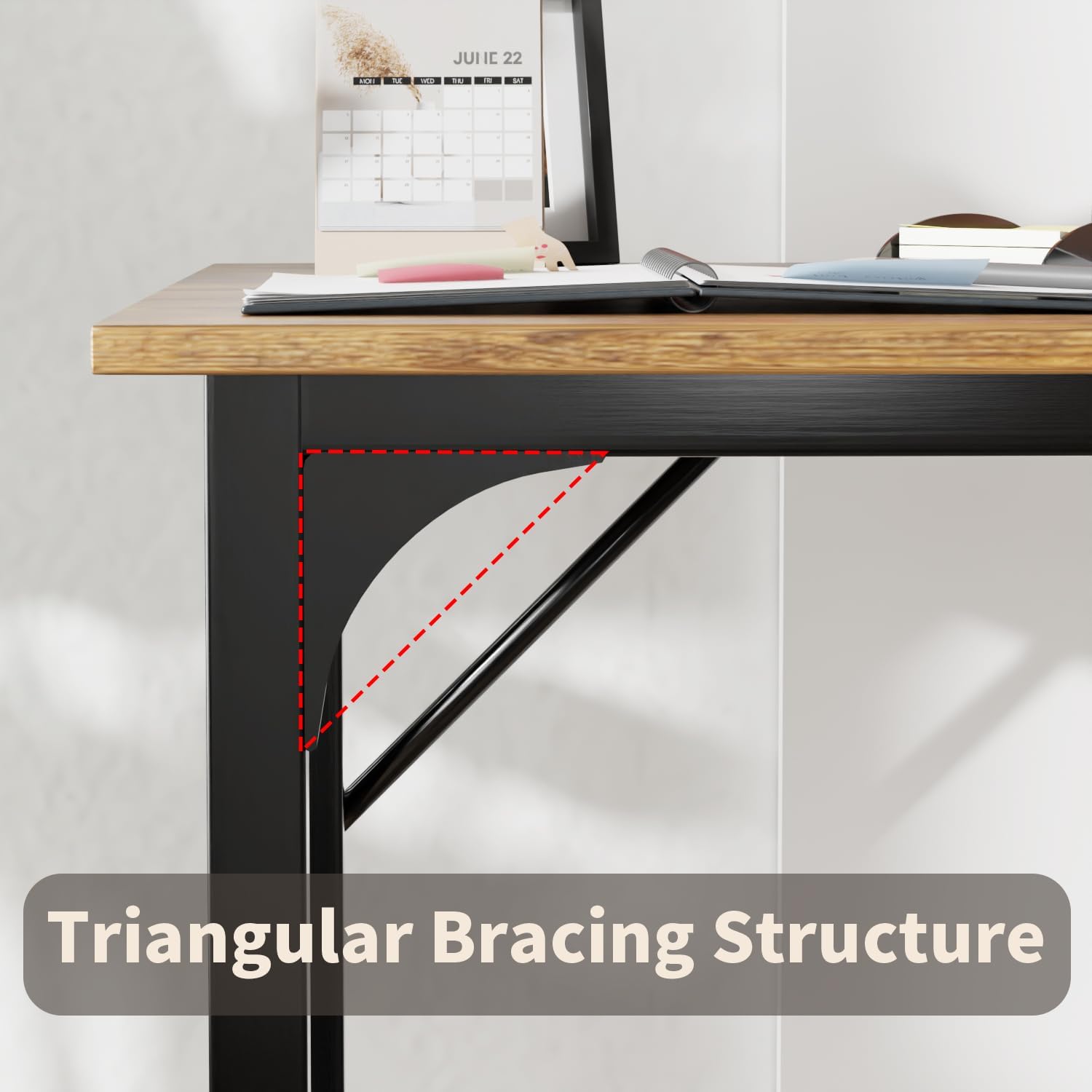 - REINFORCED FRAME: Built with a durable steel frame and a 1.5 cm thick desktop, this office desk provides solid support, ideal for high-usage setups like home office desks or student workspaces.