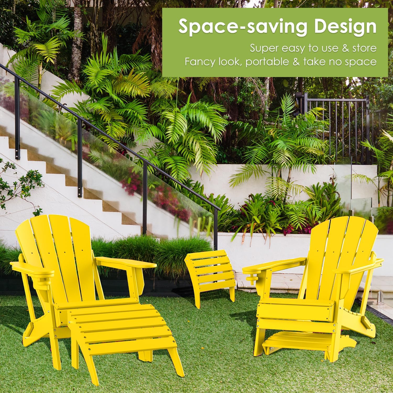 GREENVINES Adirondack-Ottoman | Set of 4 | HDPE Plastic | Outdoor Footrest | All Weather | Foot Rest | Foot Stool | Yellow | for Adirondack Chair | for Patio Backyard Pool