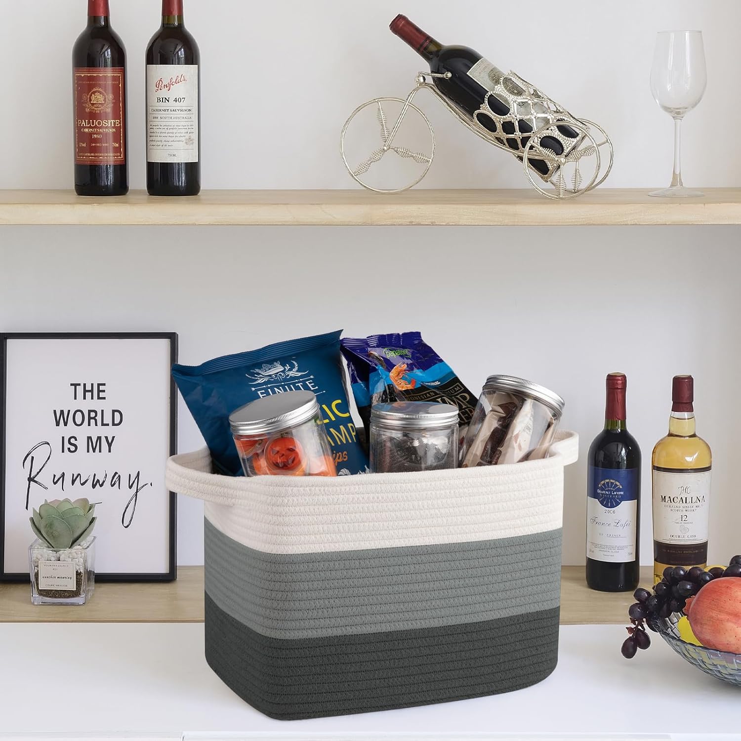 OIAHOMY Storage Basket, Woven Baskets for Storage, Cotton Rope Basket for toys,Towel Baskets for Bathroom - Pack of 3, Gradient Dark Gray