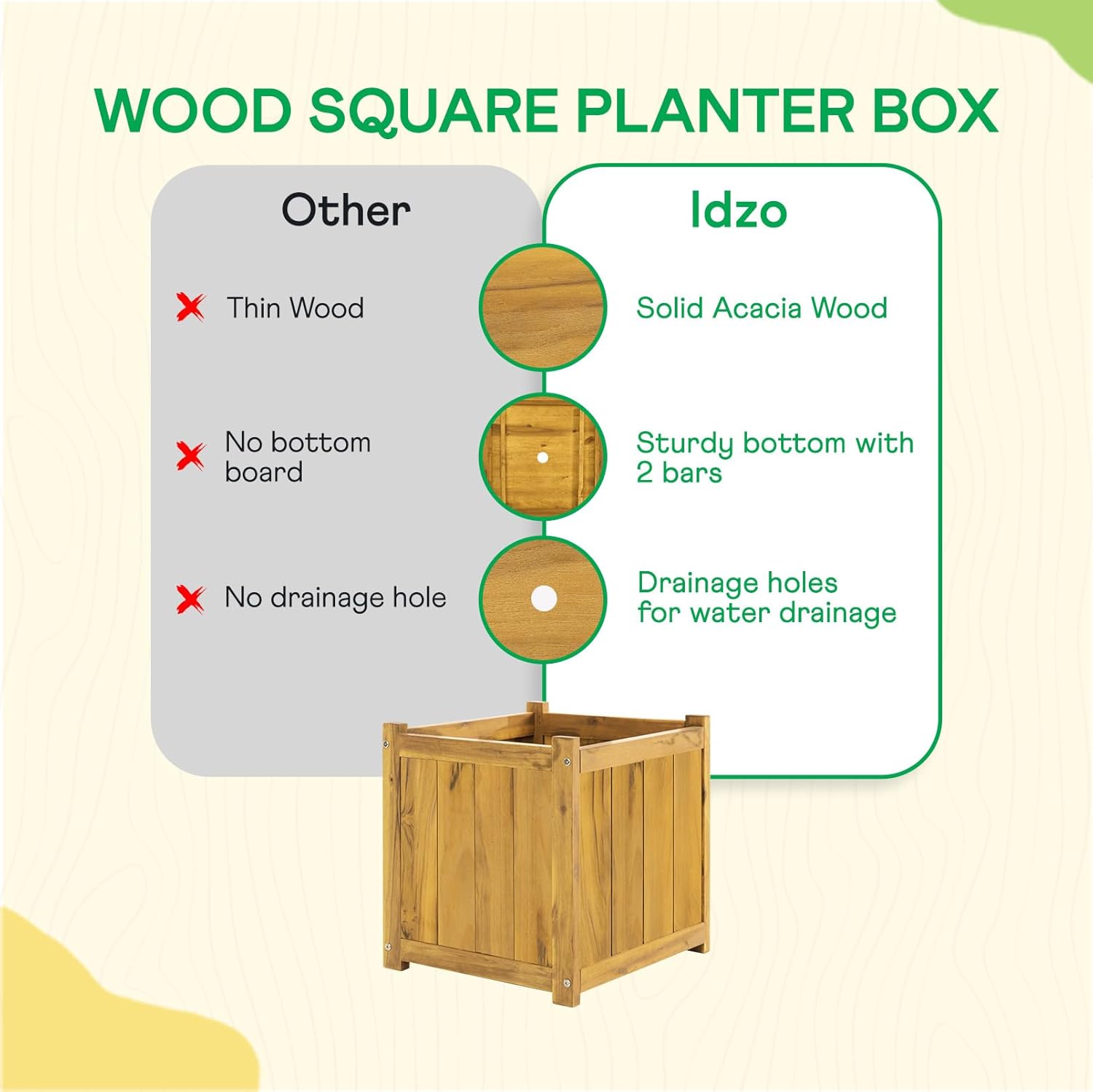 - HIGH-QUALITY ACACIA WOOD CONSTRUCTION: This herb garden planter outdoor is made from durable Acacia wood; Its natural wood grain adds a touch of nature to your living space, ideal for growing plants