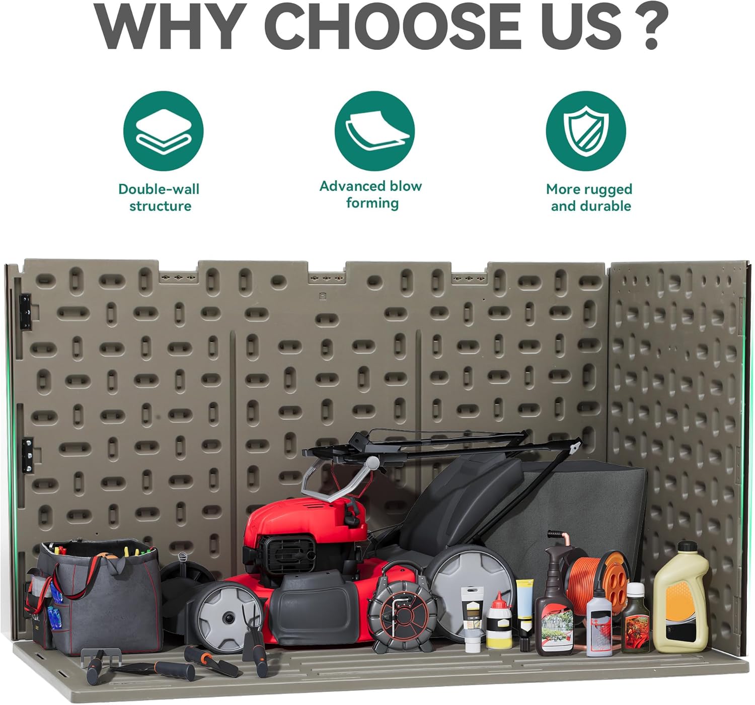 - Double-wall Construction: Unique dual wall structure raises sturdiness & durability to the next level; All-weather guard resin pairs with wooden texture to impart a sleek texture for lasting outdoor use