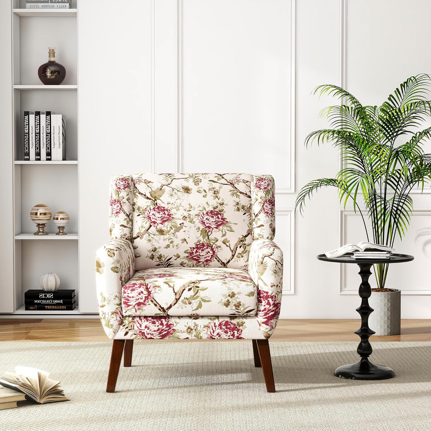 - Attractive Floral Accent Chair - The Angle of the back, the position of the arms, and the width are ergonomic. The wide backrest and seat, made of highly elastic sponges and springs, provide you with maximum comfort. This armchair features wooden legs and a beautiful patterned design for a traditional and chic look.