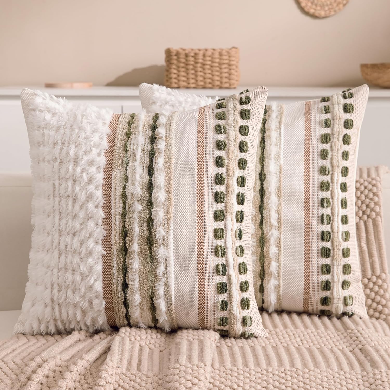 - SET OF 2 & PERFECT SIZE: This set includes two 18x18-inch throw pillow covers (inserts not included), ideal for standard throw pillows. The neutral color palette ensures easy coordination with various home styles, from modern farmhouses to bohemian chic.