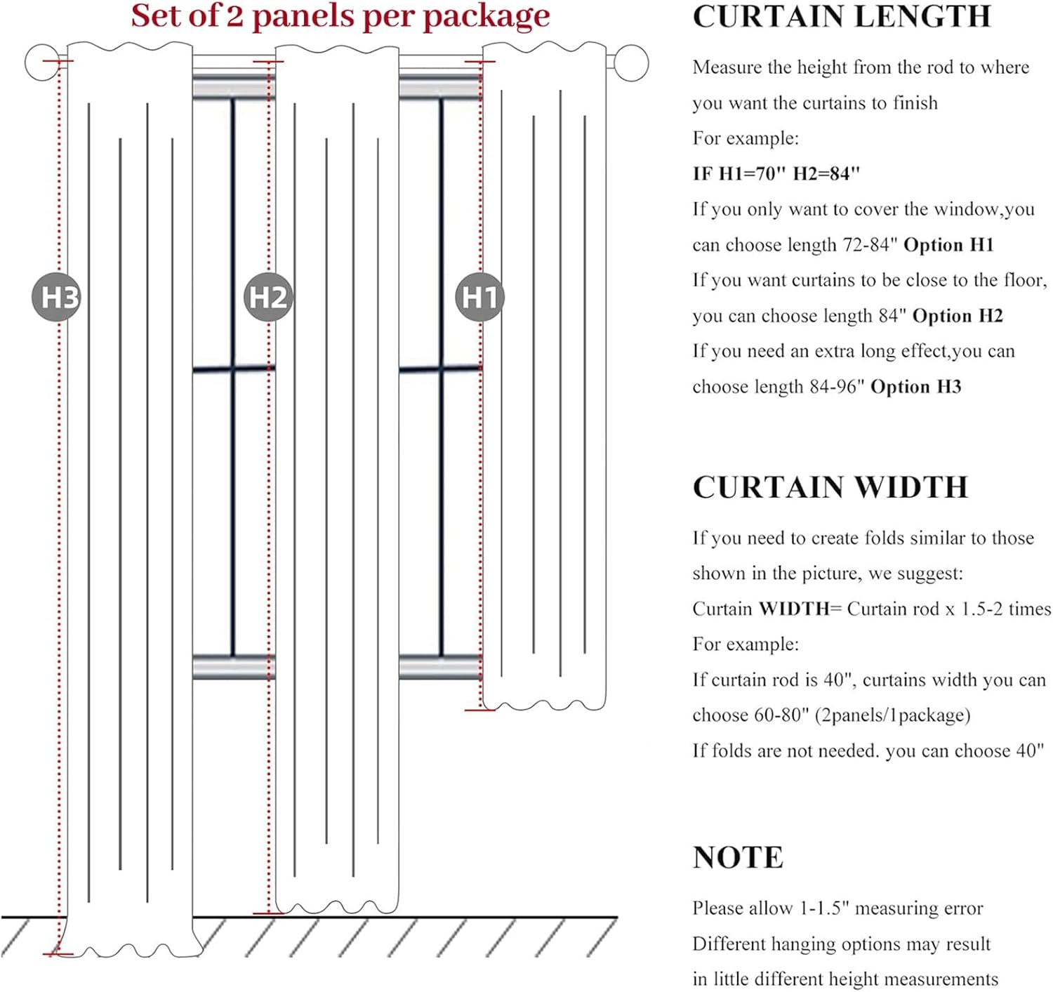 - Ready Made:Set of 2 pinch pleated curtain panels per package with 16 metal rings and 16 adjustable plastic hooks(The adjustable hook can raise and lower the height of the curtain by 1 inch),Each panel measures 40"W x 86"L,pair measures 80"W x 86"L