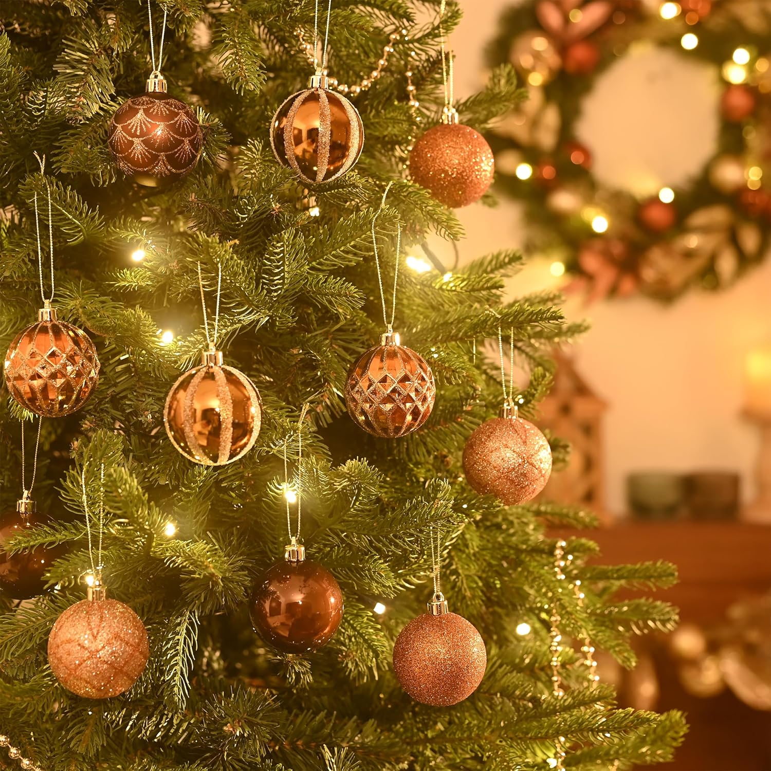 Valery Madelyn Christmas Ornaments Set, 30ct 2 Inches Bronze Copper Brown Gold Shatterproof Christmas Tree Decorations Ball Ornaments Bulk, Elegant Hanging Ornaments for Xmas Holiday Party Decor