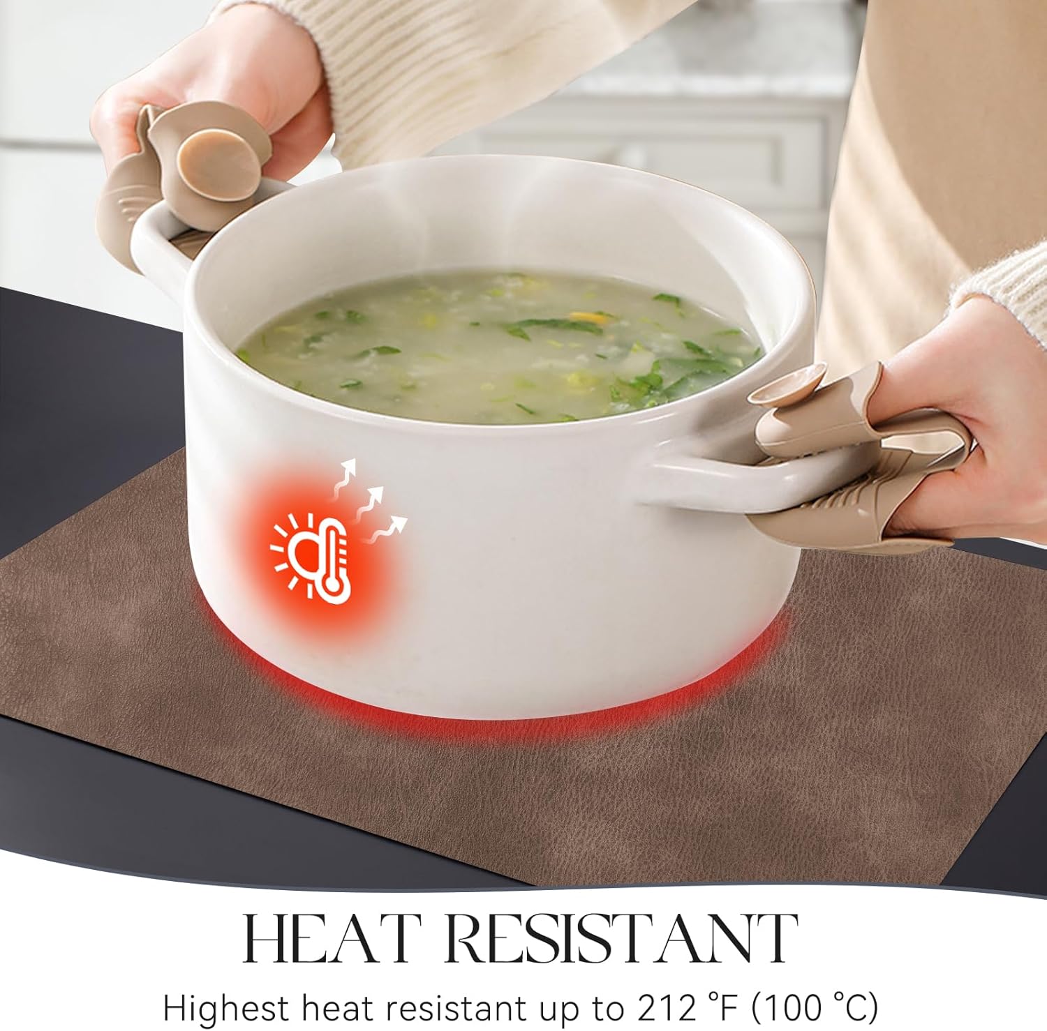 - PROTECT YOUR TABLE: Our placemats are 2mm thick and heat-resistant up to 212℉/100℃, which can protect your table from high temperatures and reduces noise from plates and flatware. It is an excellent choice to protect protect the surface of your dining table from hot dishes and liquid spills.