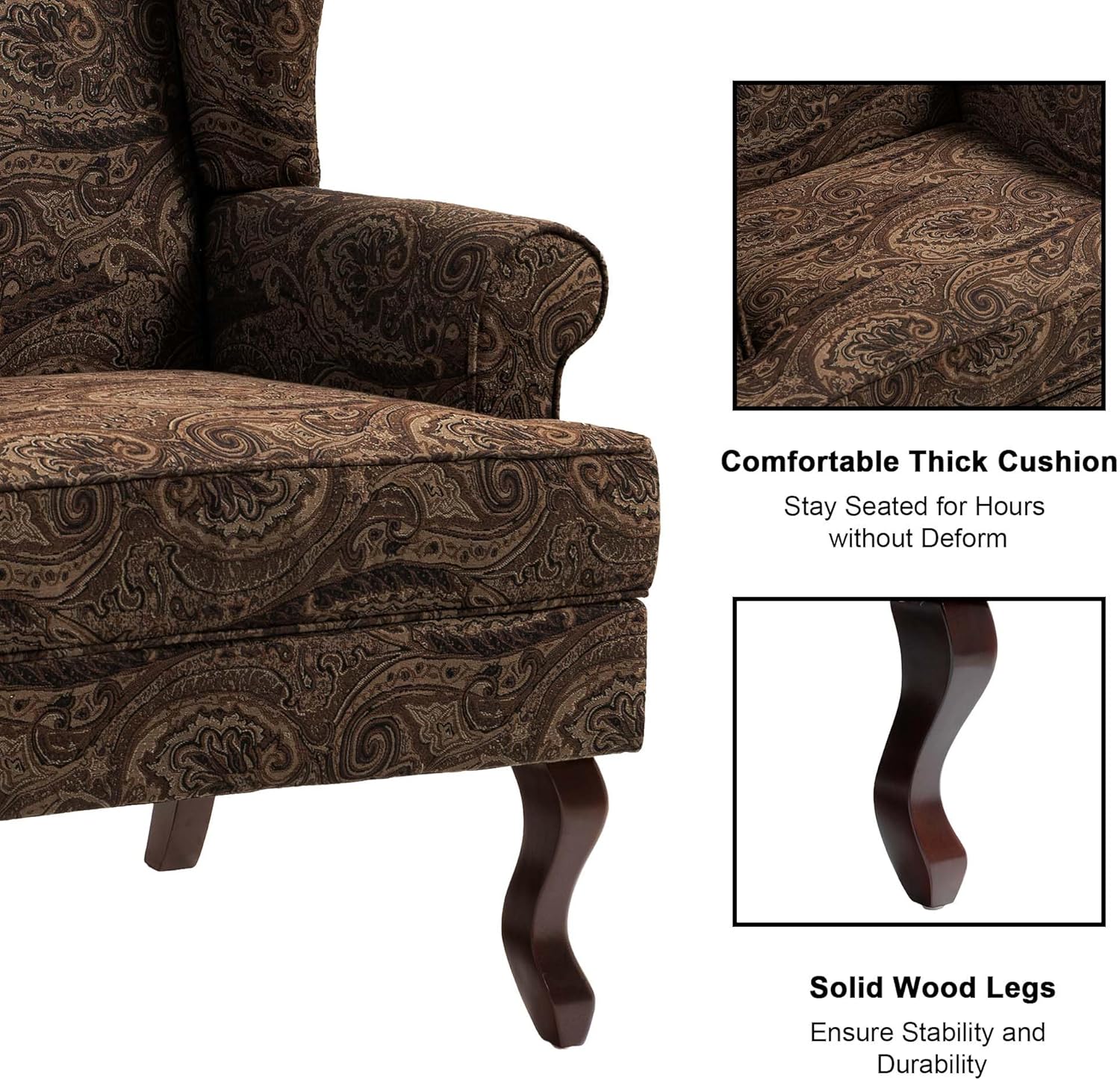- High Wingback Chair Design: The back of arm chair is higher, which can better relieve the pressure on the back and waist, and bring a comfortable sitting experience
