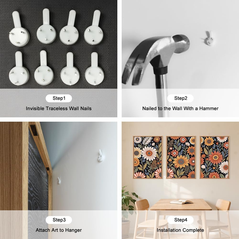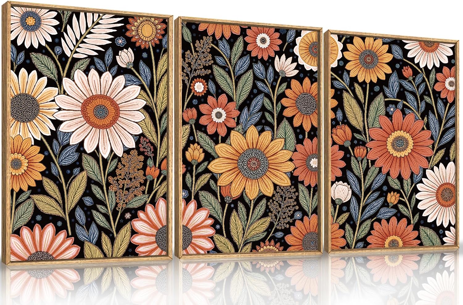 - 【Abstract Boho Flower Wall Art】This set of three beautifully framed floral wall art pieces features vibrant sunflowers and colorful blooms against a dark background. The artwork brings warmth and elegance to any space, perfect for living rooms, bedrooms, or offices.