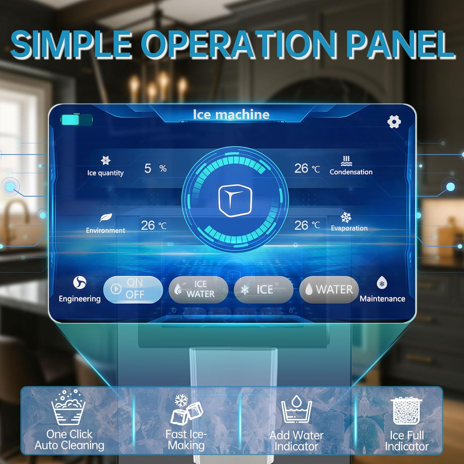 - [ONE-CLICK AUTO-CLEAN & SIMPLE LED CONTROL] Press once for self-cleaning—no disassembly needed. The intuitive LED panel simplifies operation: add water indicator, ice full indicator, or check status at a glance.