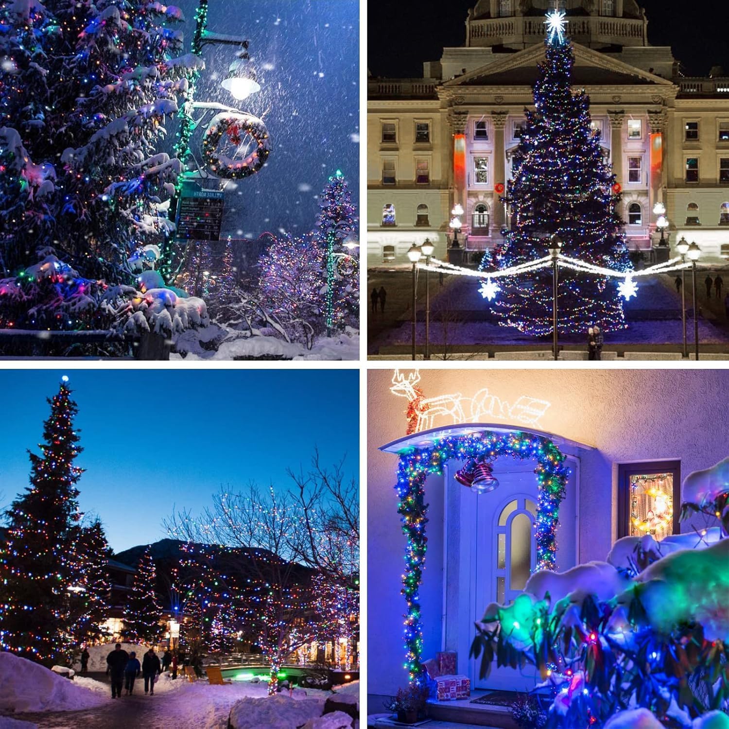 - [Upgraded 4 Pack Super Bright Solar Christmas Lights]: Cute shaped, powerful 1800mAh Capacity Battery, Super Bright Total 800 LED 288FT, Upgraded Larger LED Beads, IP65 Waterproof Performance. Durable Flexible Copper Wire, Quick Charging Technology, Romantic Christmas Decorations. Solar string lights outdoor waterproof will be a great choice.