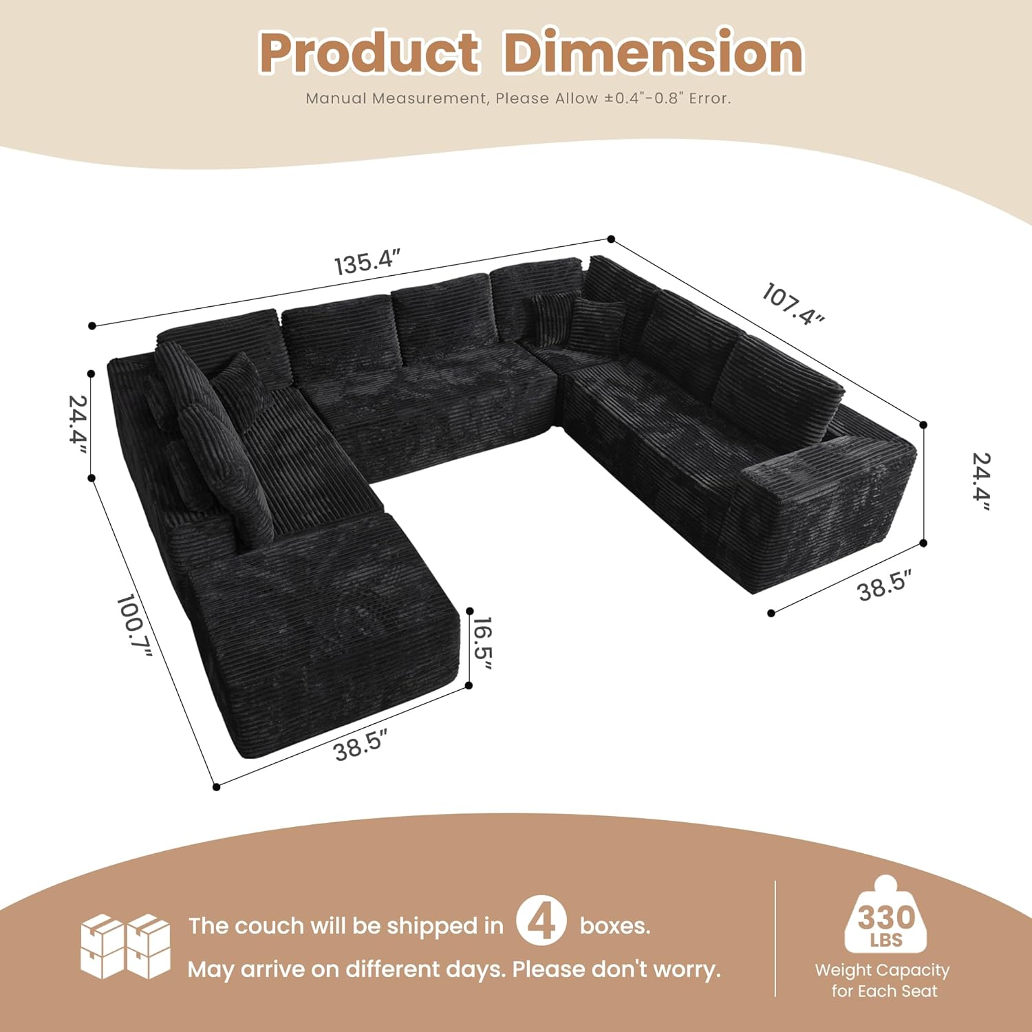 - Size : 136X108"-U Shape