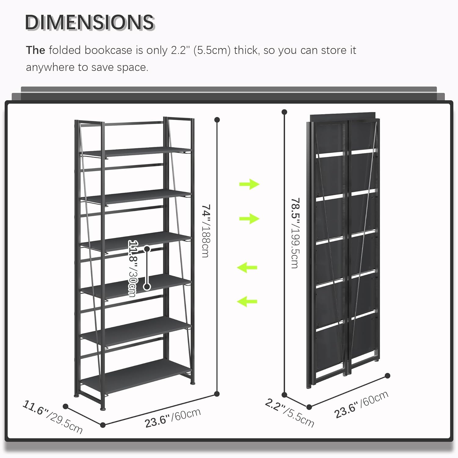 - 【Storage shelf folding sized】23.62x2.2x78.54 inches (60x5.5x199.5cm).