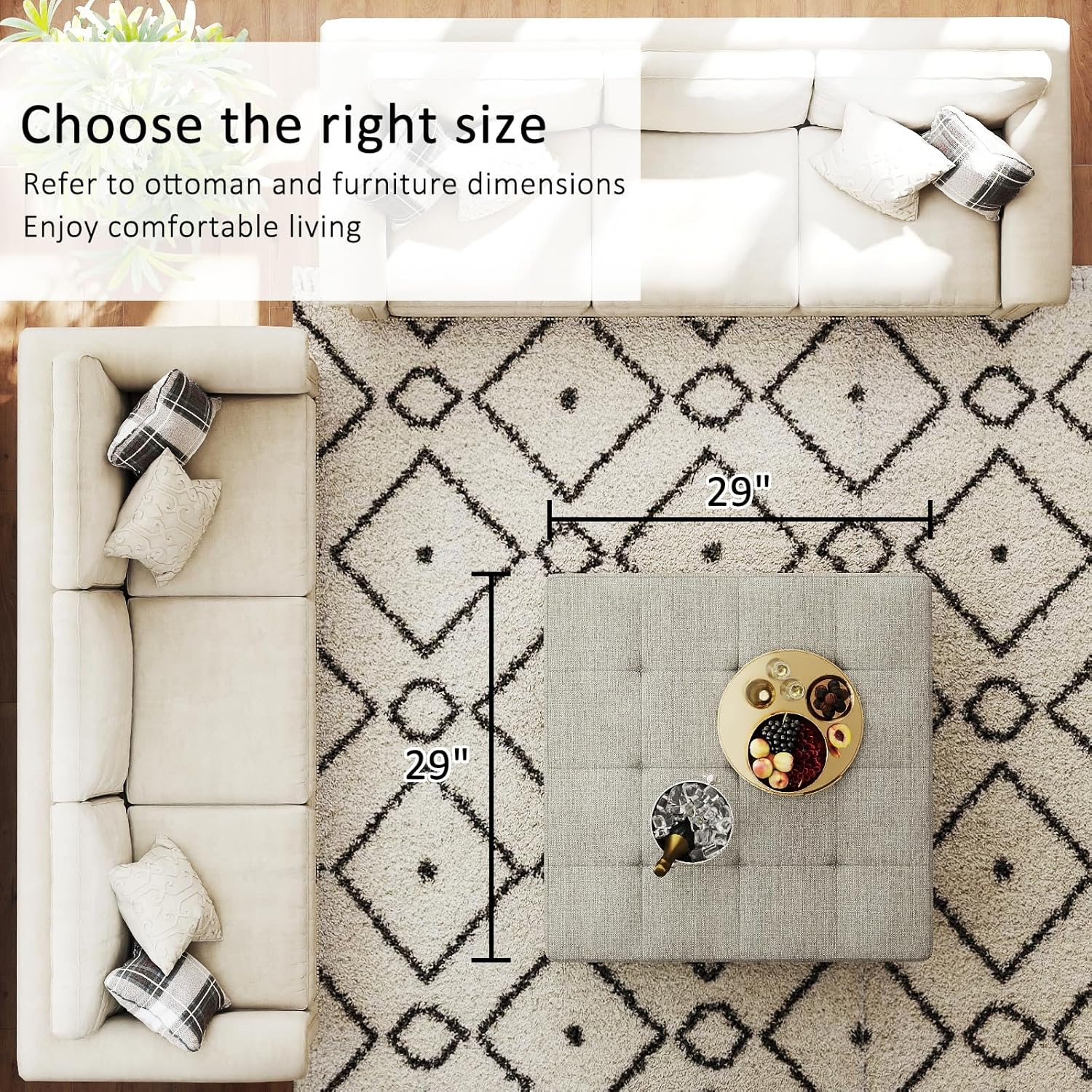 Large Square Ottoman Coffee Table, Linen Solid Upholstered Footrest Ottoman with Solid Wood Shelf Storage Tufted Coffee Table for Bedroom Living Room, Linen