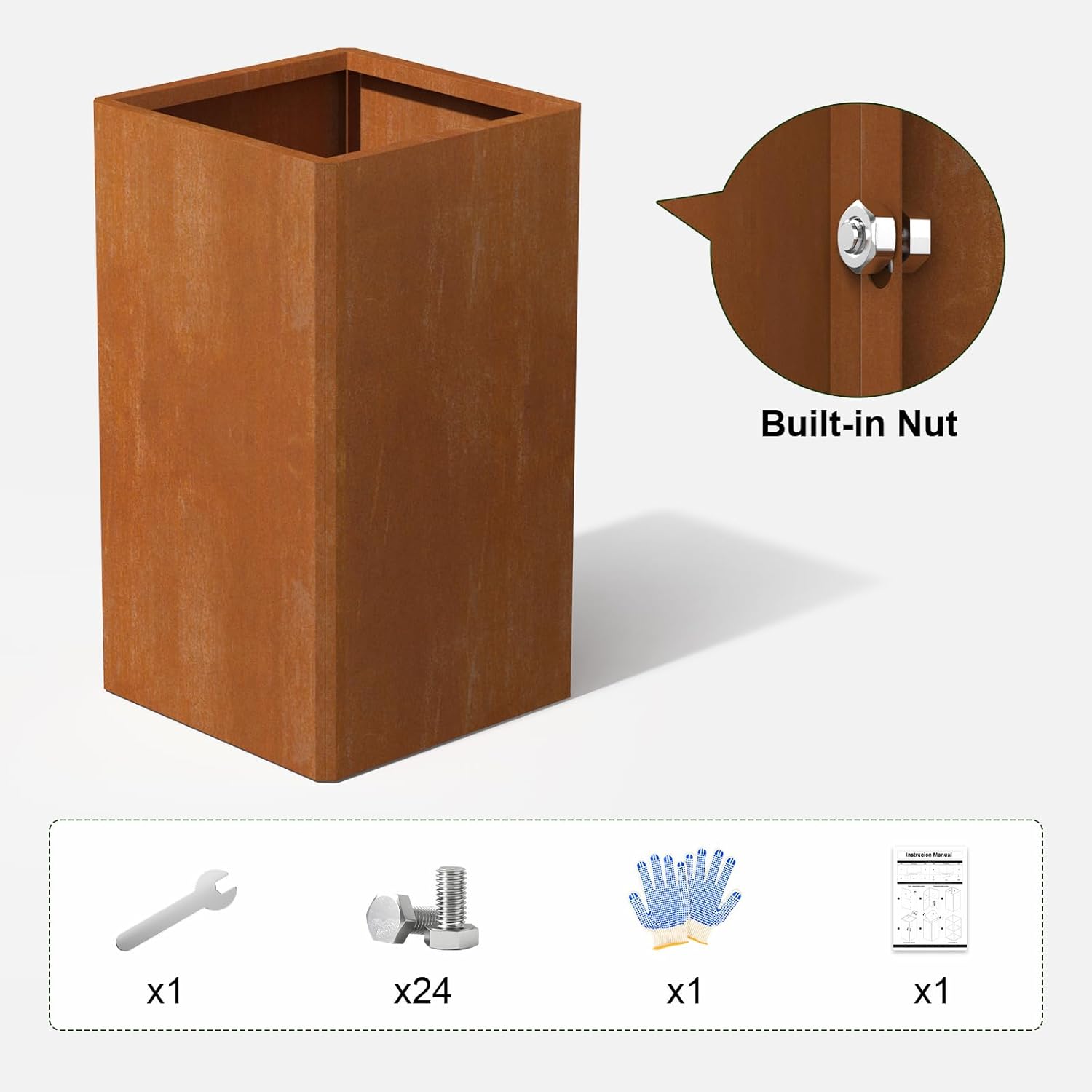 - ♻️ Eco-Height Landscape Transformation: Large outdoor planter made with metal steel withstands elements. Sustainable rust evolves elegantly—transforms porches/offices into instant vertical gardens!