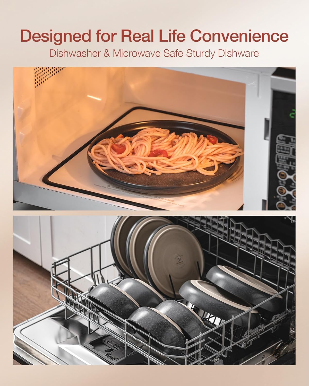 - WITHSTAND THE TEST OF TIME - Made from organic and natural clay, these dish sets are fired at 2340 °F for 13.5 hours, resulting in a sturdy, long-lasting, and chip-resistant product designed for long-term use.