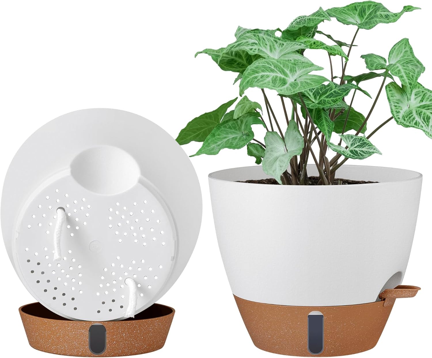 - 【Smart Water Management Self Watering Pots】Say goodbye to overwatering! Each planter features a removable, leak-proof base tray with a CLEAR WATER-LEVEL WINDOW and graduated milliliter markers. Monitor moisture levels at a glance and adjust water intake effortlessly—suitable for beginners and forgetful plant parents. The built-in self-watering wick ensures consistent soil hydration for up to 10 days, reducing watering frequency.
