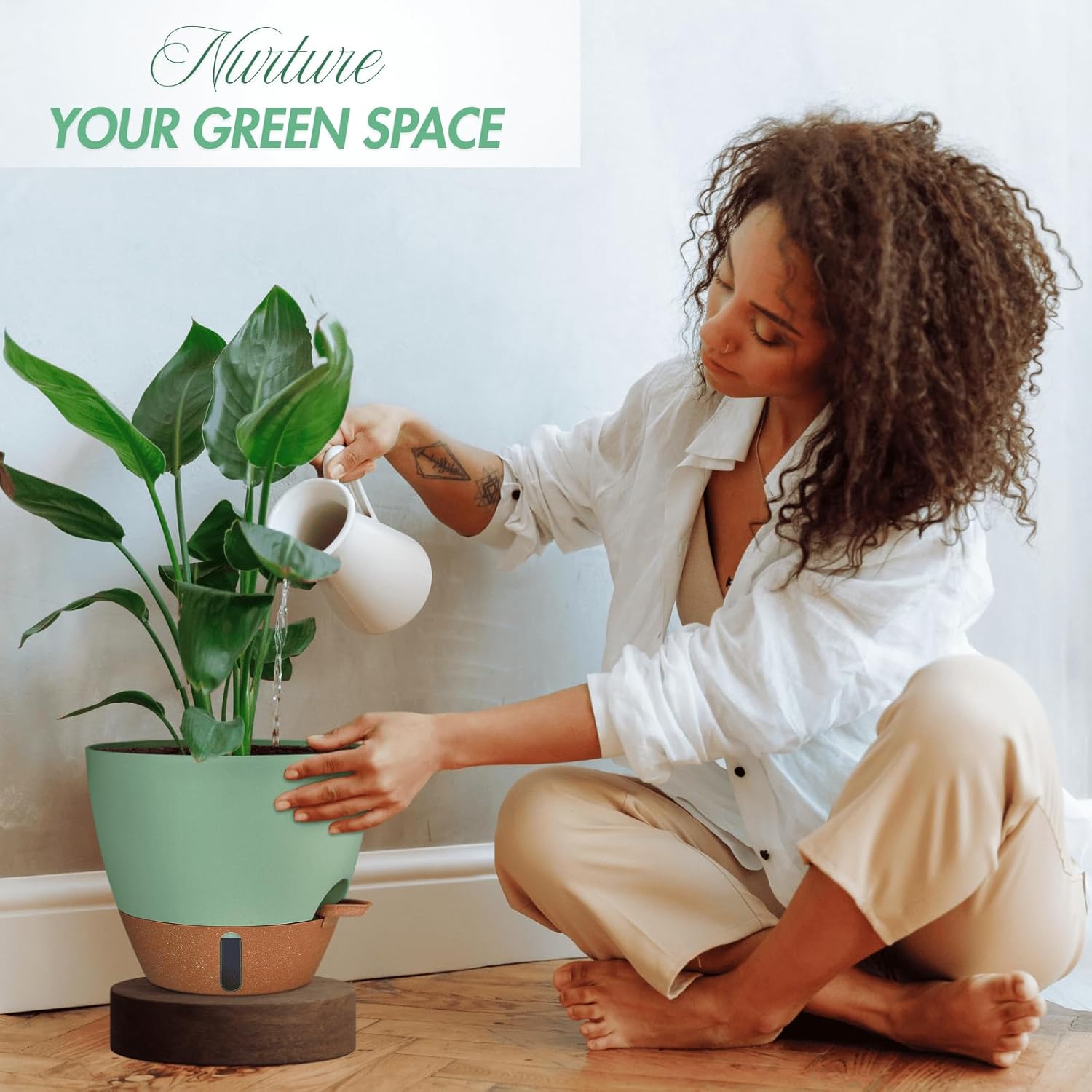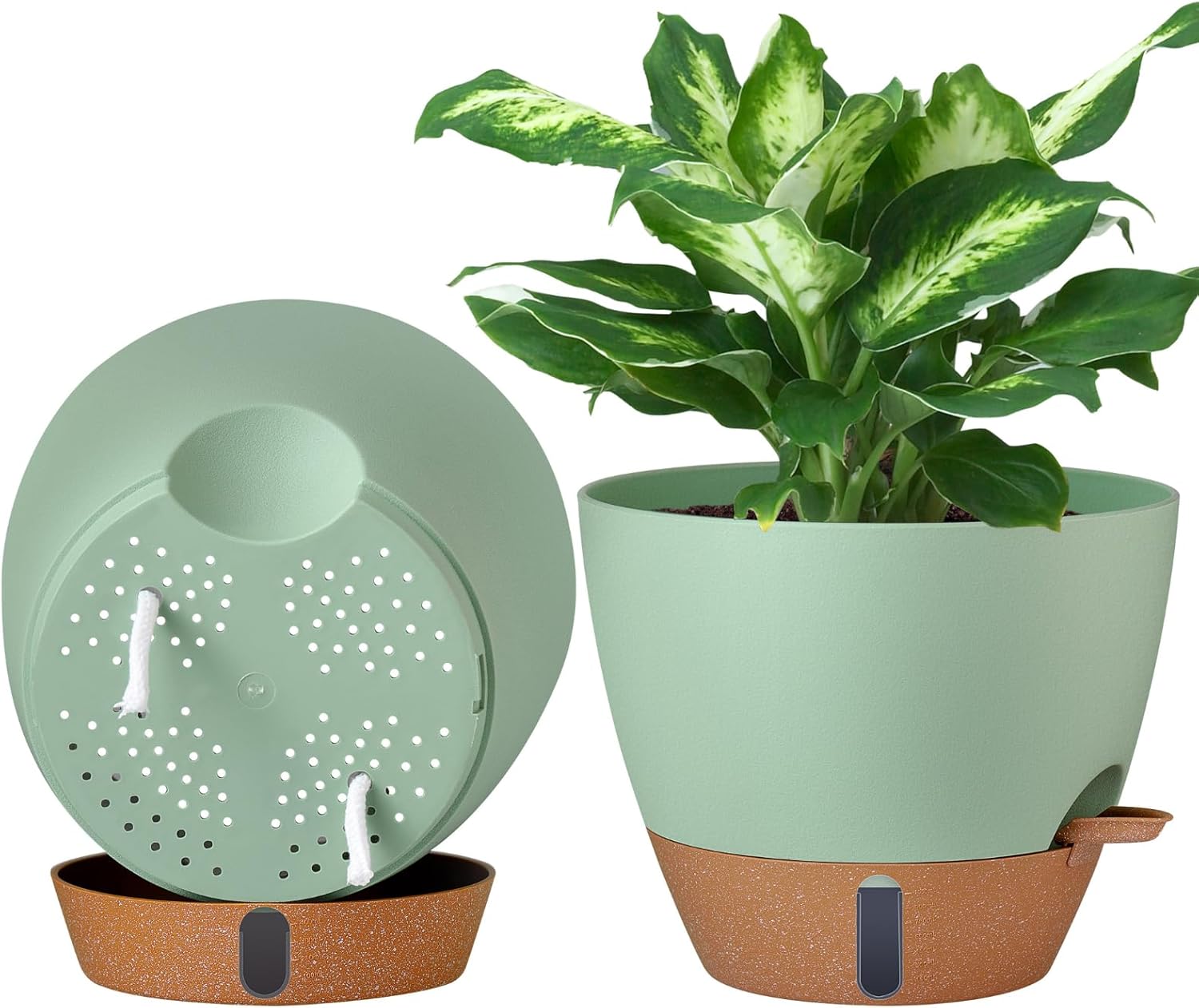 - 【Smart Water Management Self Watering Pots】Say goodbye to overwatering! Each planter features a removable, leak-proof base tray with a CLEAR WATER-LEVEL WINDOW and graduated milliliter markers. Monitor moisture levels at a glance and adjust water intake effortlessly—suitable for beginners and forgetful plant parents. The built-in self-watering wick ensures consistent soil hydration for up to 10 days, reducing watering frequency. Travel no worry – your plants stay hydrated while you're away.