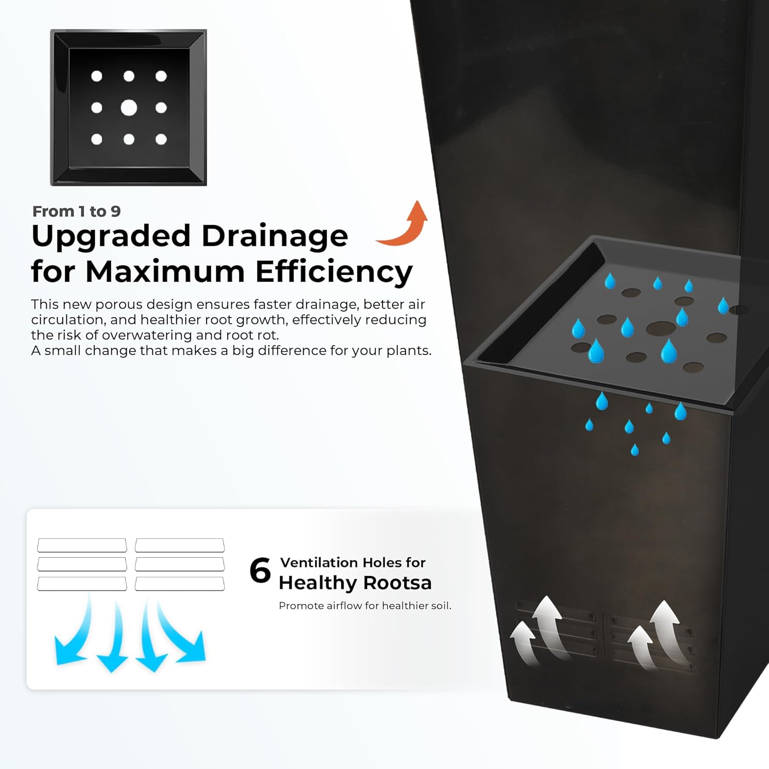 - Slotted Side Ventilation: Designed with slotted ventilation holes on both sides to improve airflow, enhance soil breathability, and support plant health.