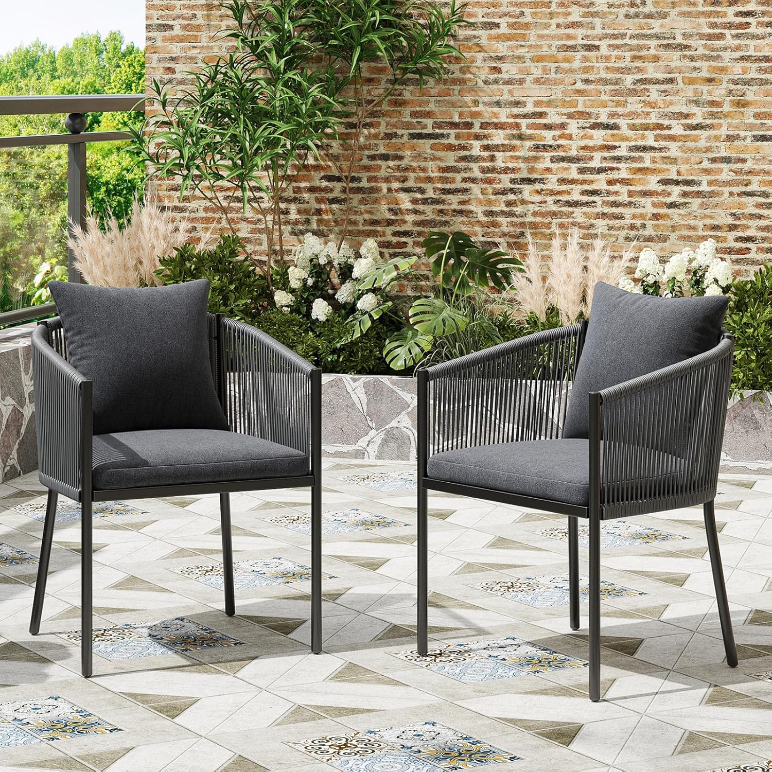 Soohow Outdoor Furniture Set for 2, Outdoor Dining Set Patio Chairs 2 Piece, Rattan Wicker Patio Furniture Chairs with Cushions for Garden, Deck, Backyard, Poolside
