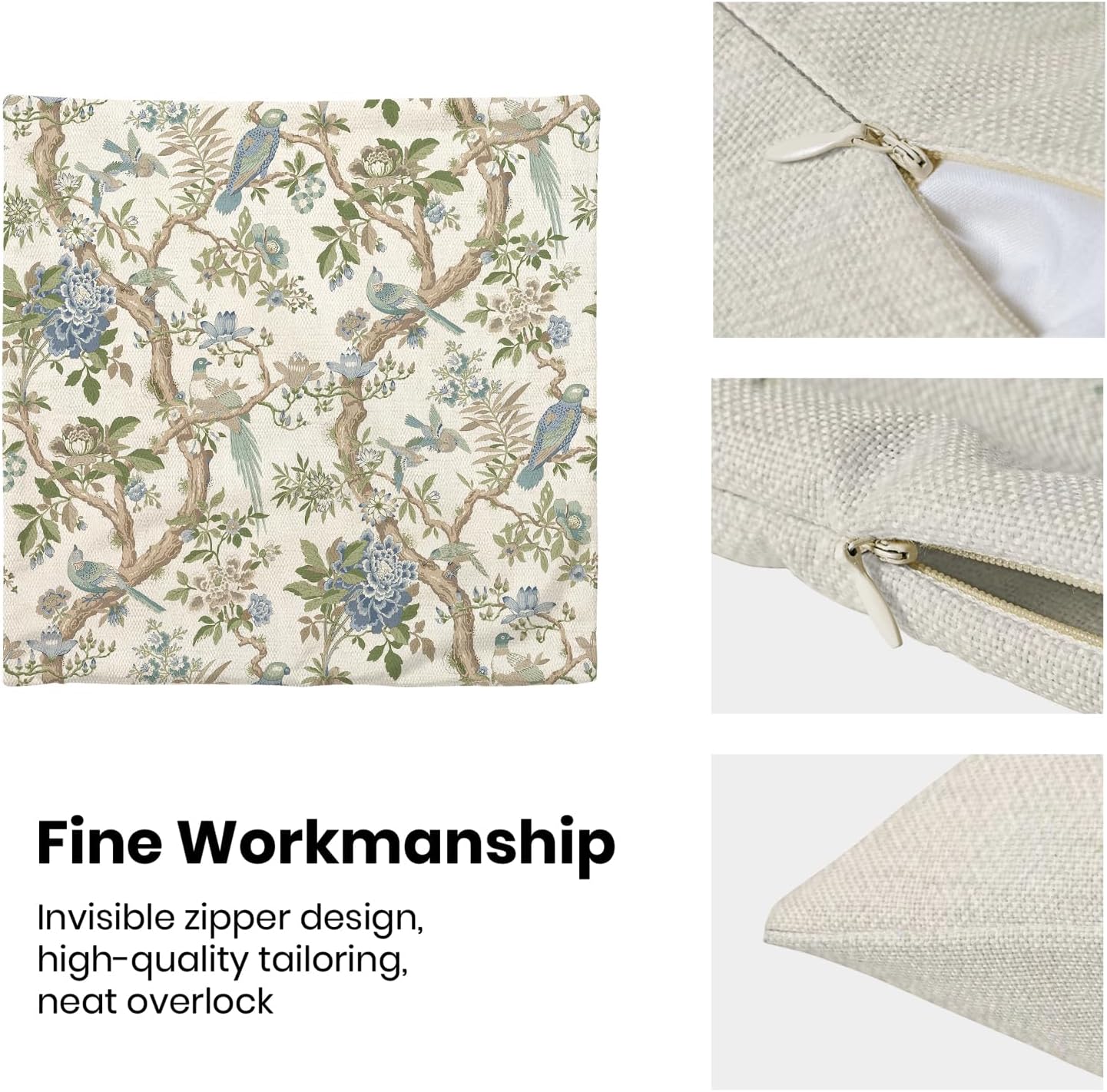 - 【Square Pillow Covers Size】 Chinoiserie flower birds pillow case set includes 2 pcs of farmhouse couch pillow covers (NO Pillow). Home decor farmhouse pillow covers measures 22x22 inch/ 55x55 cm. All the floral decor throw pillow covers have a hidden zipper. It is easy to insert or remove the pillow core to replace the spring pillowcase. Easy to clean and wash, sturdy and not easy to damage.