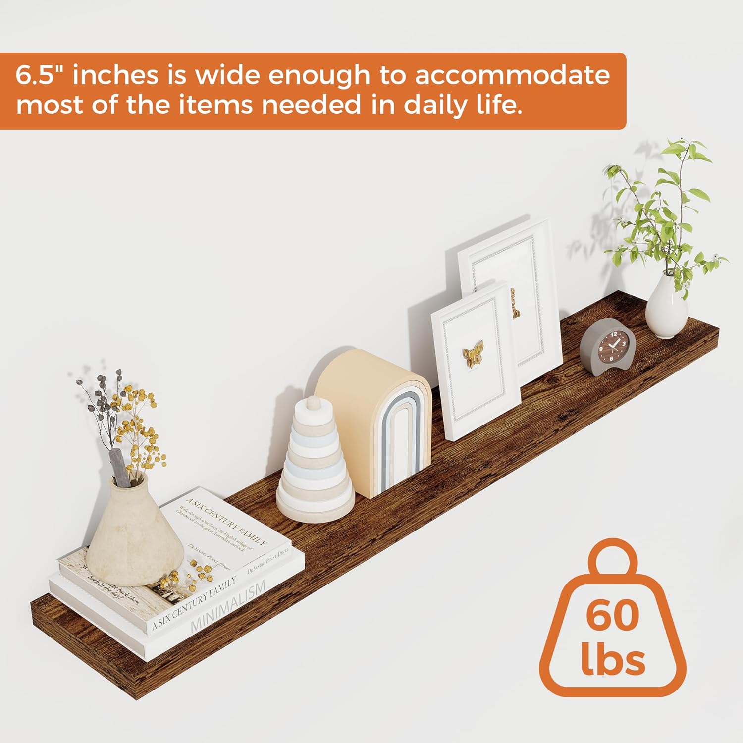 - EASY TO ASSEMBLE: Upgraded hidden mounting bracket aligns ensure a sleek floating effect, making the shelves secure. Instructions, a magnetic level, drywall anchors, and screws are included, making it easy to mount these rustic shelves gap-free in under 8 minutes