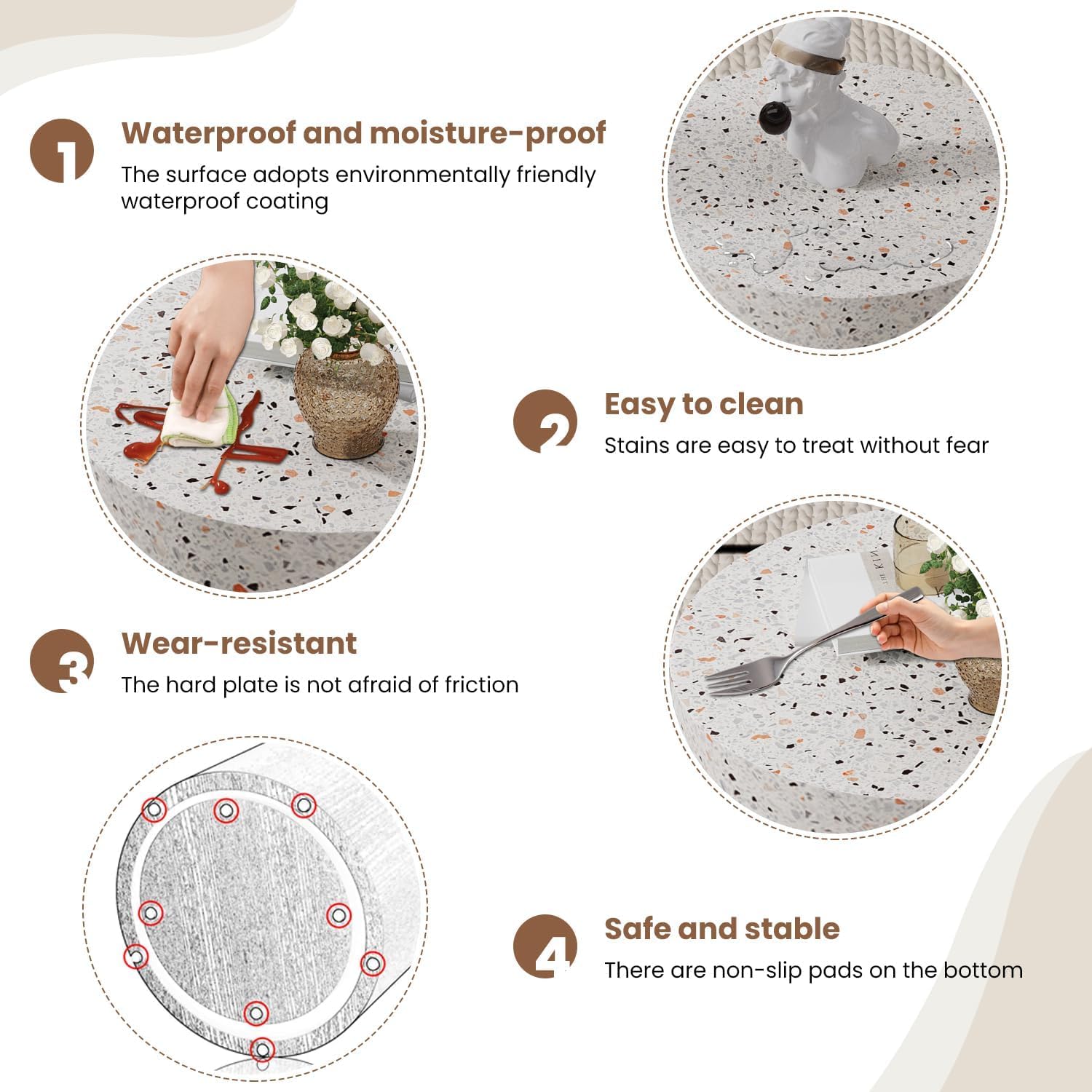 Round Nesting Coffee Table Set of 2 Modern Wood Coffee Tables Handcraft Drum Coffees Table Farmhouse Round Sofa Side Tables End Table for Living Room Small Spaces (Terrazzo)