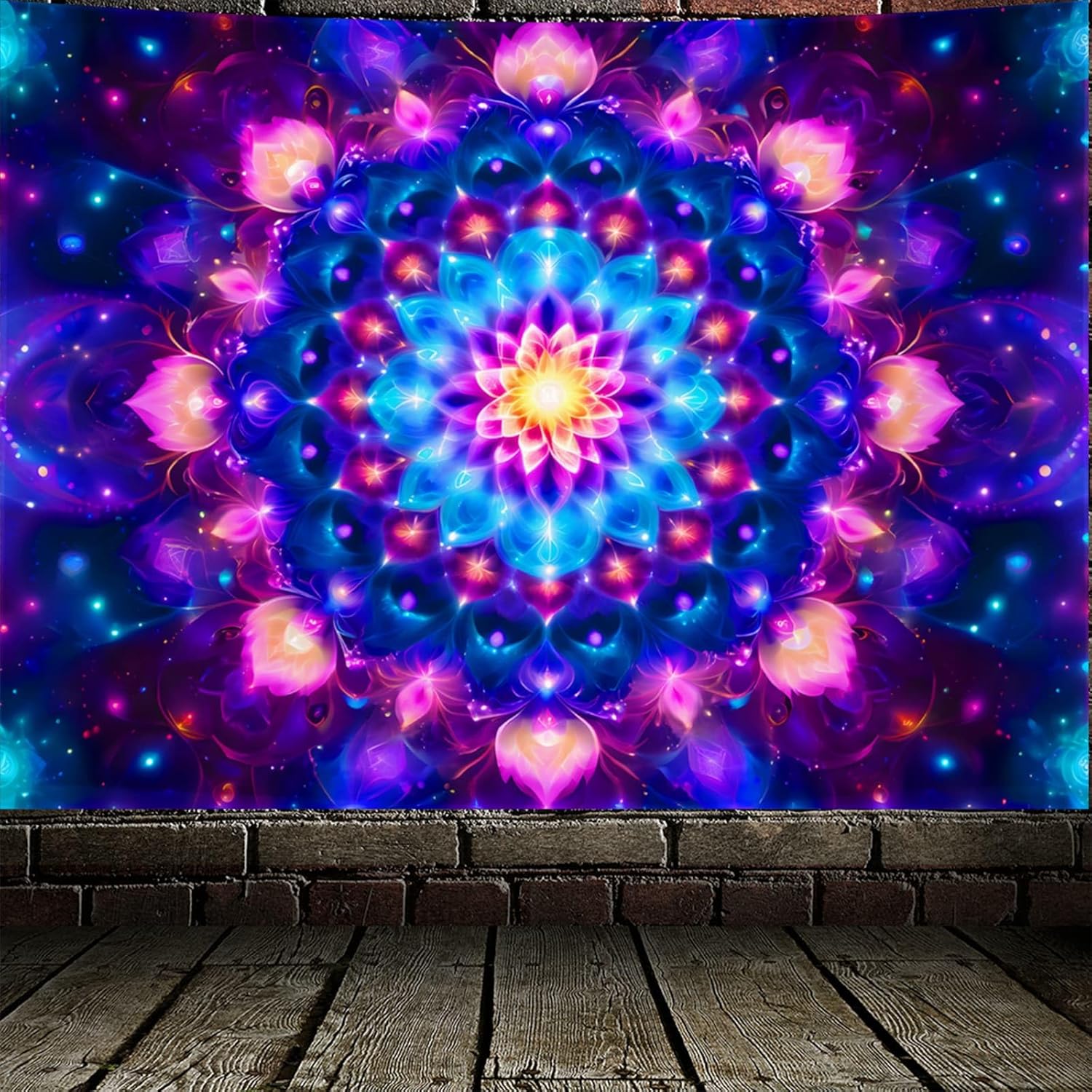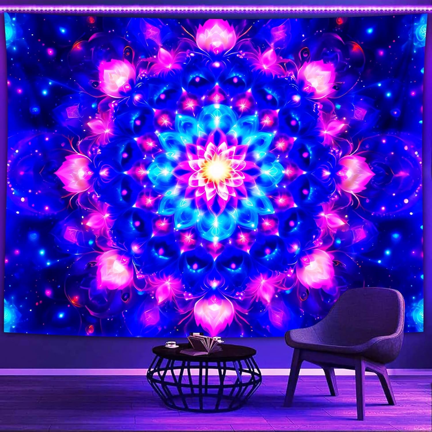PSYHILAR Blacklight Mandala Tapestry for Bedroom, Psychedelic Black Light Posters for Adults and Teens, Colorful UV Reactive Aesthetic Bohemian Art Wall Hanging Decor (80 x 60 Inches)
