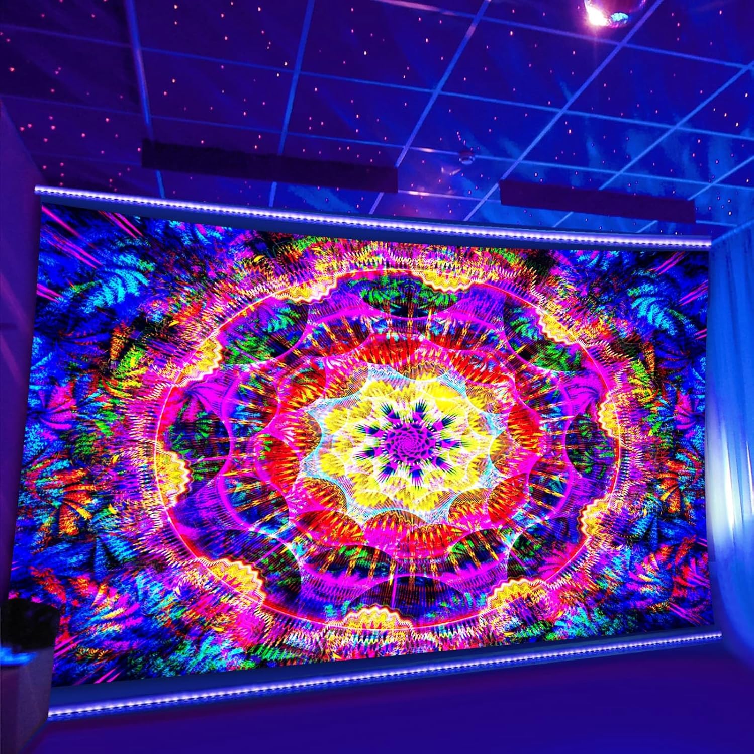 PSYHILAR Blacklight Mandala Tapestry for Bedroom, Psychedelic Black Light Posters for Adults and Teens, Colorful UV Reactive Aesthetic Bohemian Art Wall Hanging Decor (60 x 50 Inches)