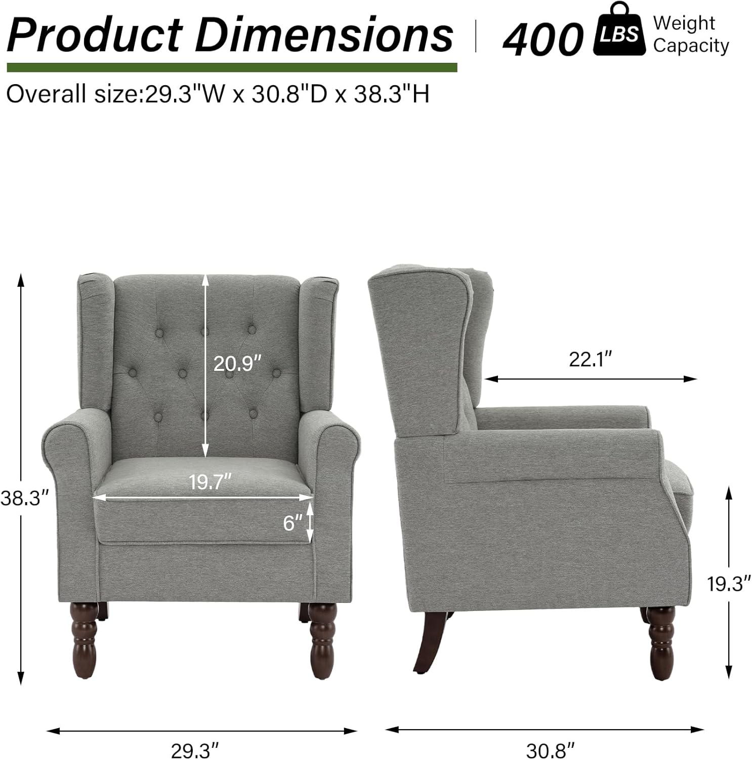 - Comfy and Robust Build Reading Chair: Our comfy bedroom chair with solid wood frame construction can easily support the weight of 400 Lbs. And the cushion and back of this sofa chair is made of high-density and high-elasticity foam, which can provide you with maximum comfort