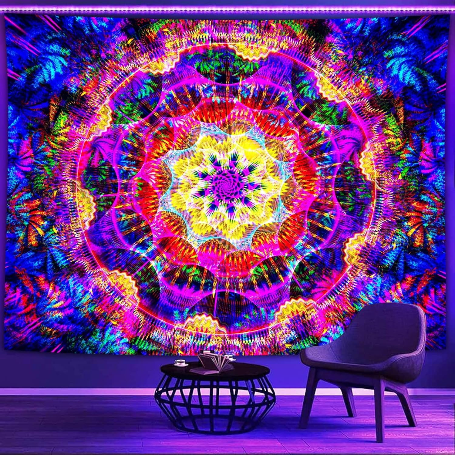PSYHILAR Blacklight Mandala Tapestry for Bedroom, Psychedelic Black Light Posters for Adults and Teens, Colorful UV Reactive Aesthetic Bohemian Art Wall Hanging Decor (40 x 30 Inches)