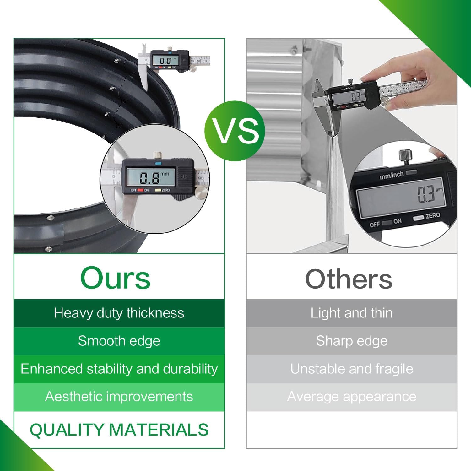 - EASY TO ASSEMBLE: Set up your garden bed, in just minutes and easy to put it together, it can be reused for many years. GARDMAX raised garden beds feature an round design with no sharp corners to cover the edges. And the top edge of the metal raised garden bed comes with a black rubber sealing edge for reinforcement as well as to prevent injury, and it can be cutted to the length you required. Get started on your garden right away and enjoy fresh, healthy produce in no time