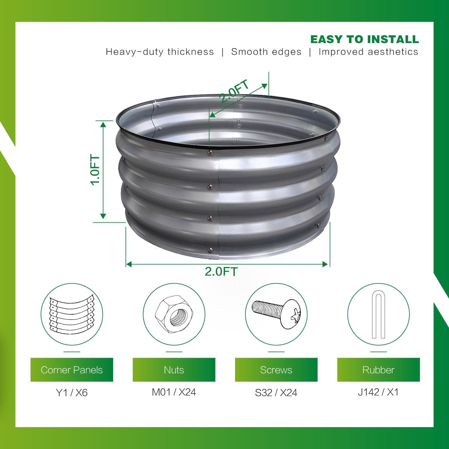 GARDMAX 2x2x1FT Galvanized Round Raised Garden Bed Kit, Metal Planter Boxes Outdoor with Easy Assembly, Large Garden Bed for Vegetables, Fruits, Flower, Herbs Silver