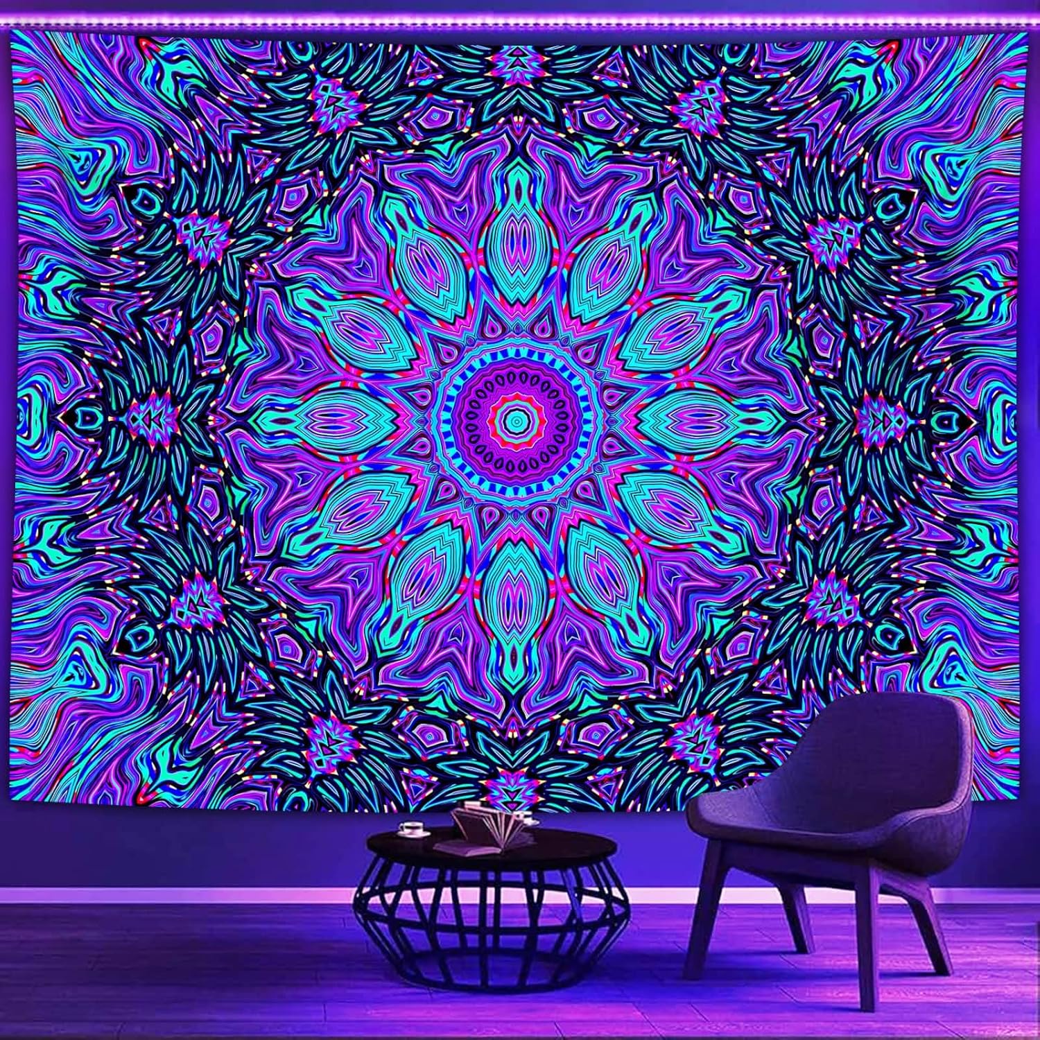 PSYHILAR Blacklight Mandala Tapestry for Bedroom, Psychedelic Black Light Posters for Adults and Teens, Neon UV Reactive Aesthetic Bohemian Art Wall Hanging Decor (40 x 30 Inches)