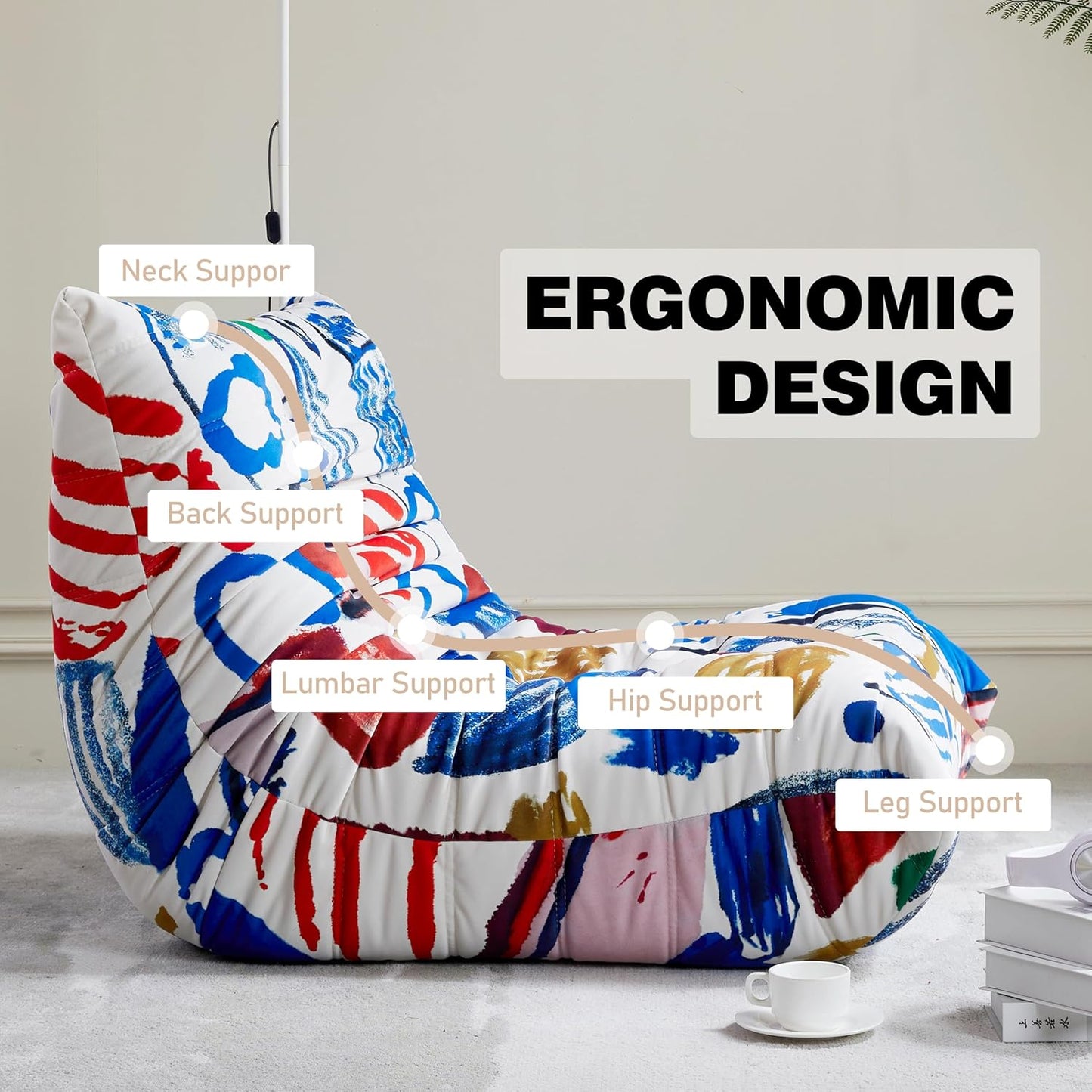 - 【Ergonomic Design】-Designed with your comfort in mind, the bean bag chair features a thoughtful ergonomic design that provides exceptional support for your neck, back, lumbar, hip and leg region. The high-elastic memory foam filling conforms to your body, offering targeted support and ensuring a cozy sitting experience.