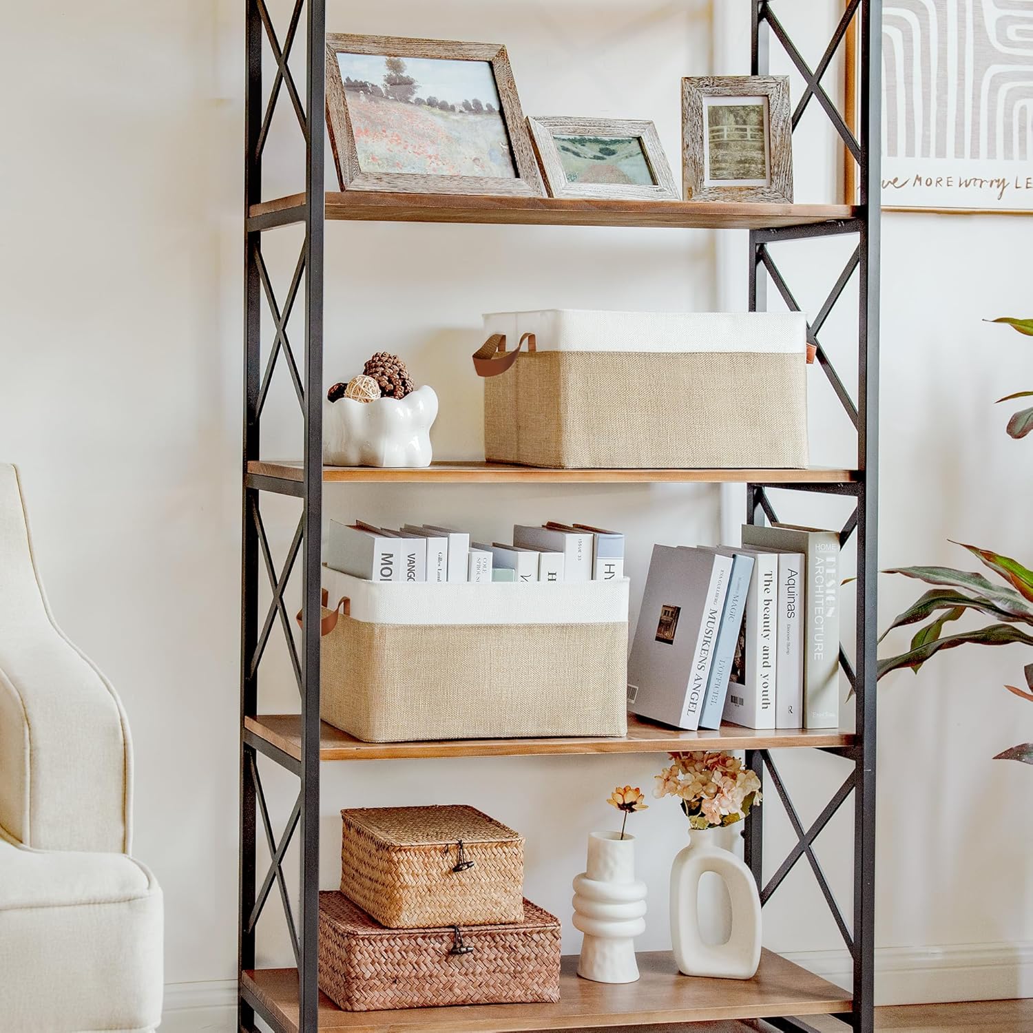 GRANNY SAYS Storage Baskets for Shelves, Closet Organizer Bins, Clothes Storage Bins with Metal Frame, Large Baskets for Organizing and Storage, Collapsible, Khaki, 2-Pack