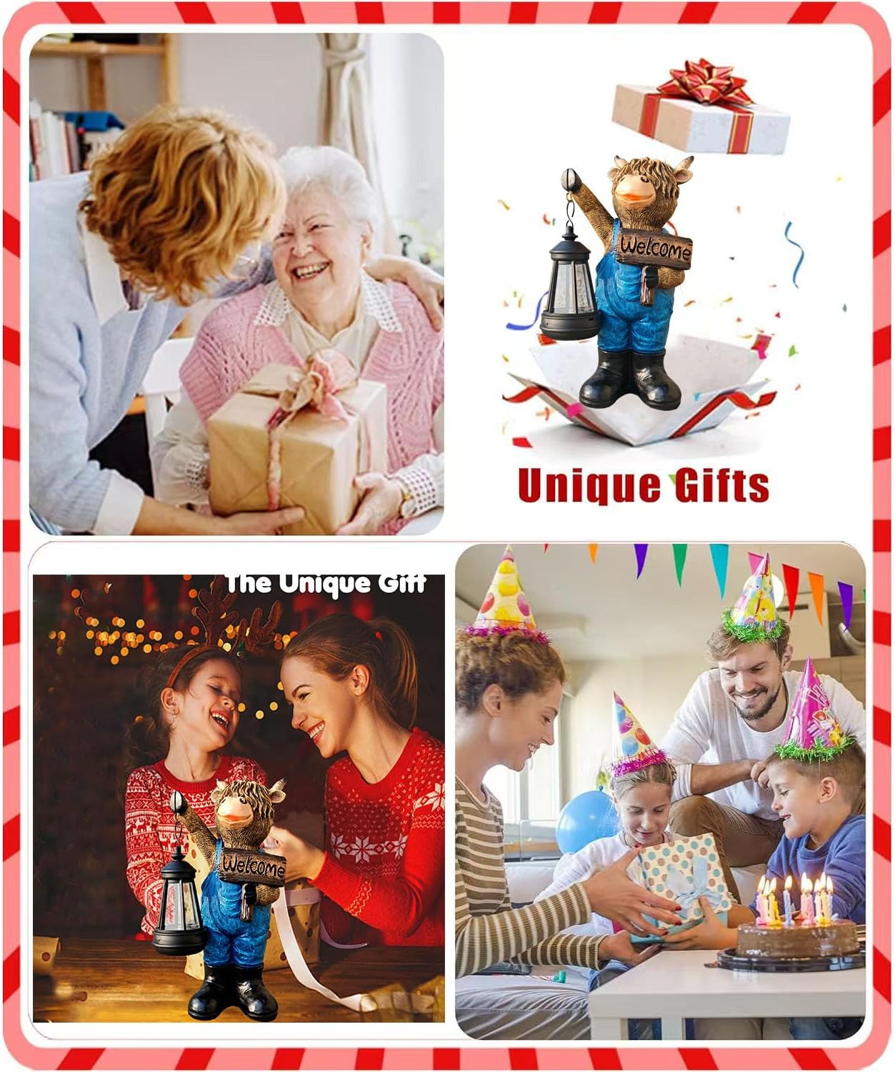 Solar Garden Statues -Highland Cow Lantern Outdoor Handmade Resin Statue with LED Light, and Welcome Holder for Patio, Yard, Gift Ideas (cow2)