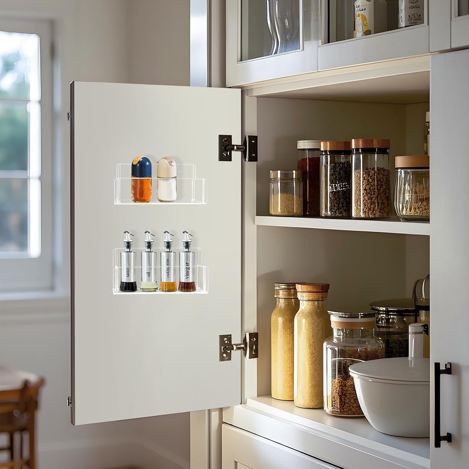 Acrylic Spice Rack Wall Mount-6 Inch, Clear Spice Shelf Storage Holder, 4 Pack Hanging Seasoning Rack Organizer for Cabinet Door, Cupboard or Wall Kitchen (Adhesive or Screw)
