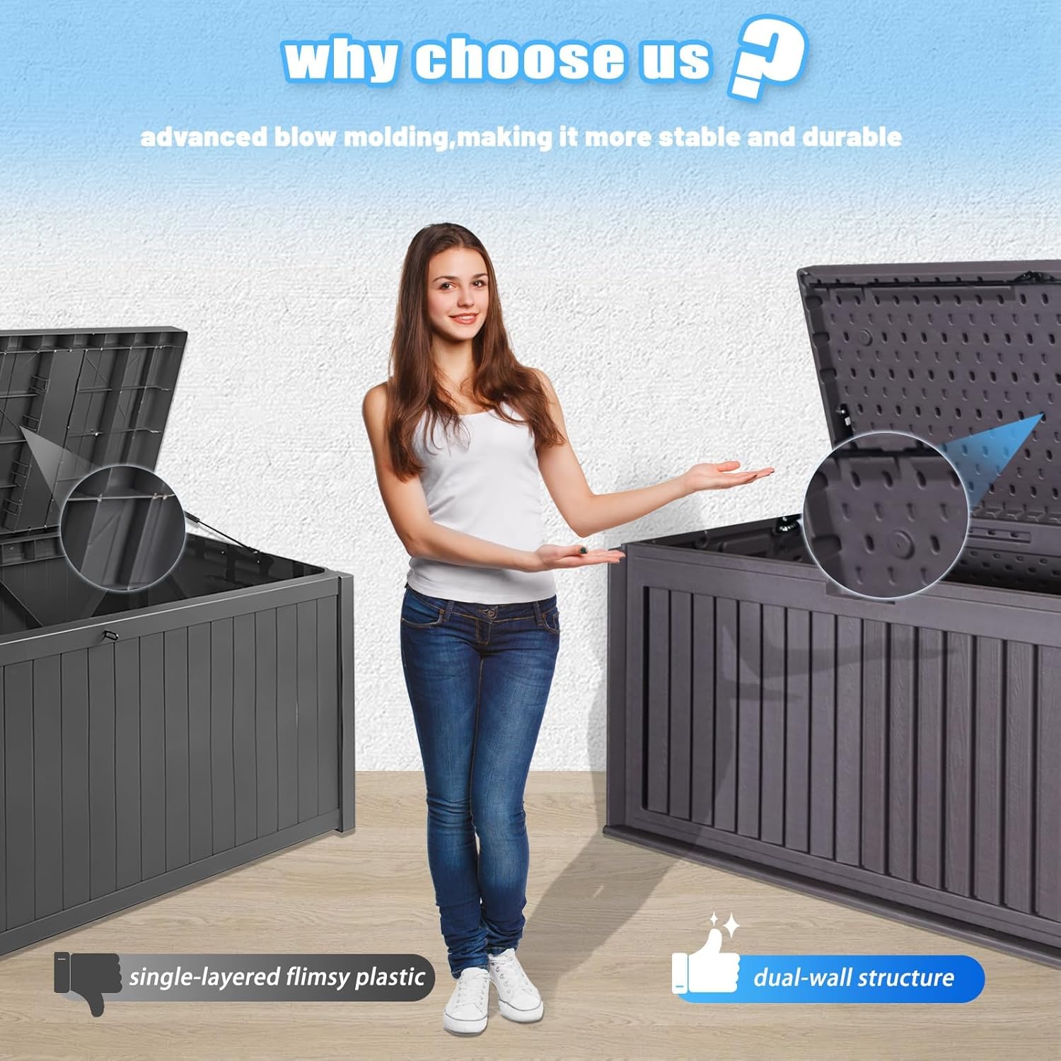- Durable Dual-Wall Construction: Crafted with a dual-wall design, this outdoor deck box ensures superior strength and long-lasting performance. It’s built to withstand all weather conditions, keeping your items safe and protected.