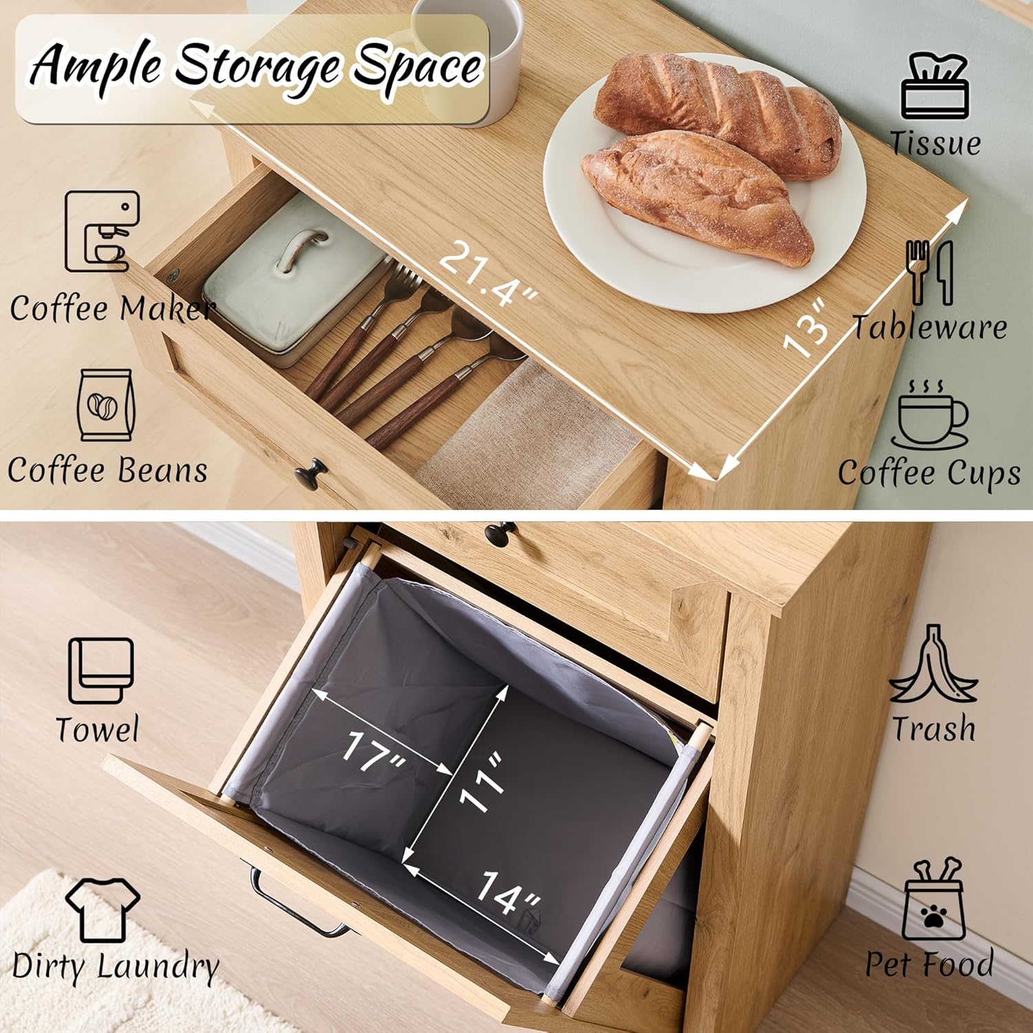 - 【Farmhouse Furniture】This wooden trash can cabinet features a simple streamlined design that combines farmhouse, beauty and practicality, easily blending into a space with a rustic farmhouse atmosphere.