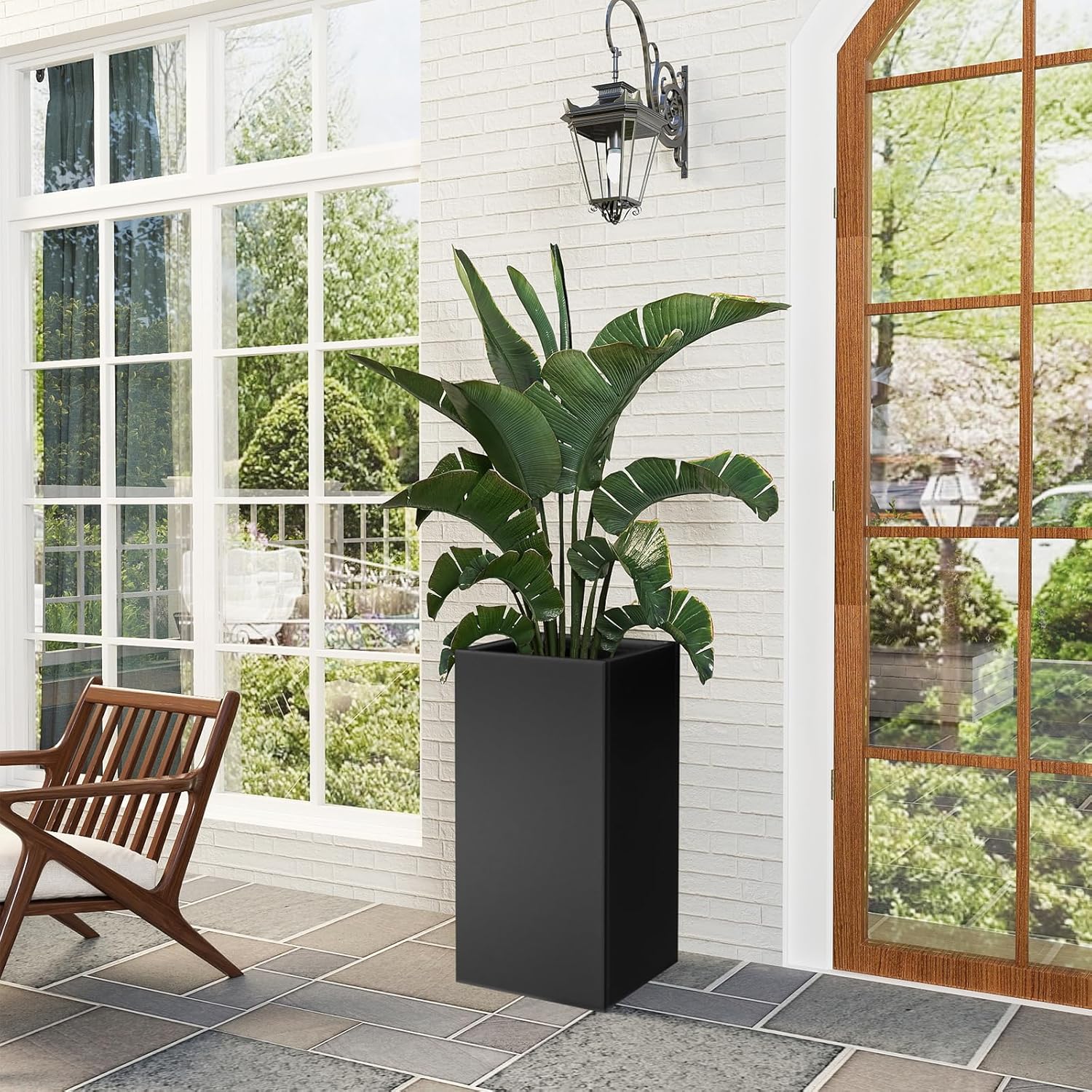 - 【Durable Metal Construction】The tall rectangular planter box is 15"L x 15"W x 30"H, made from high-grade rust-resistant metal that is weather resistant and UV protected for indoor or outdoor use. Its robust Metal construction guarantees structural integrity and visual appeal for years to come.