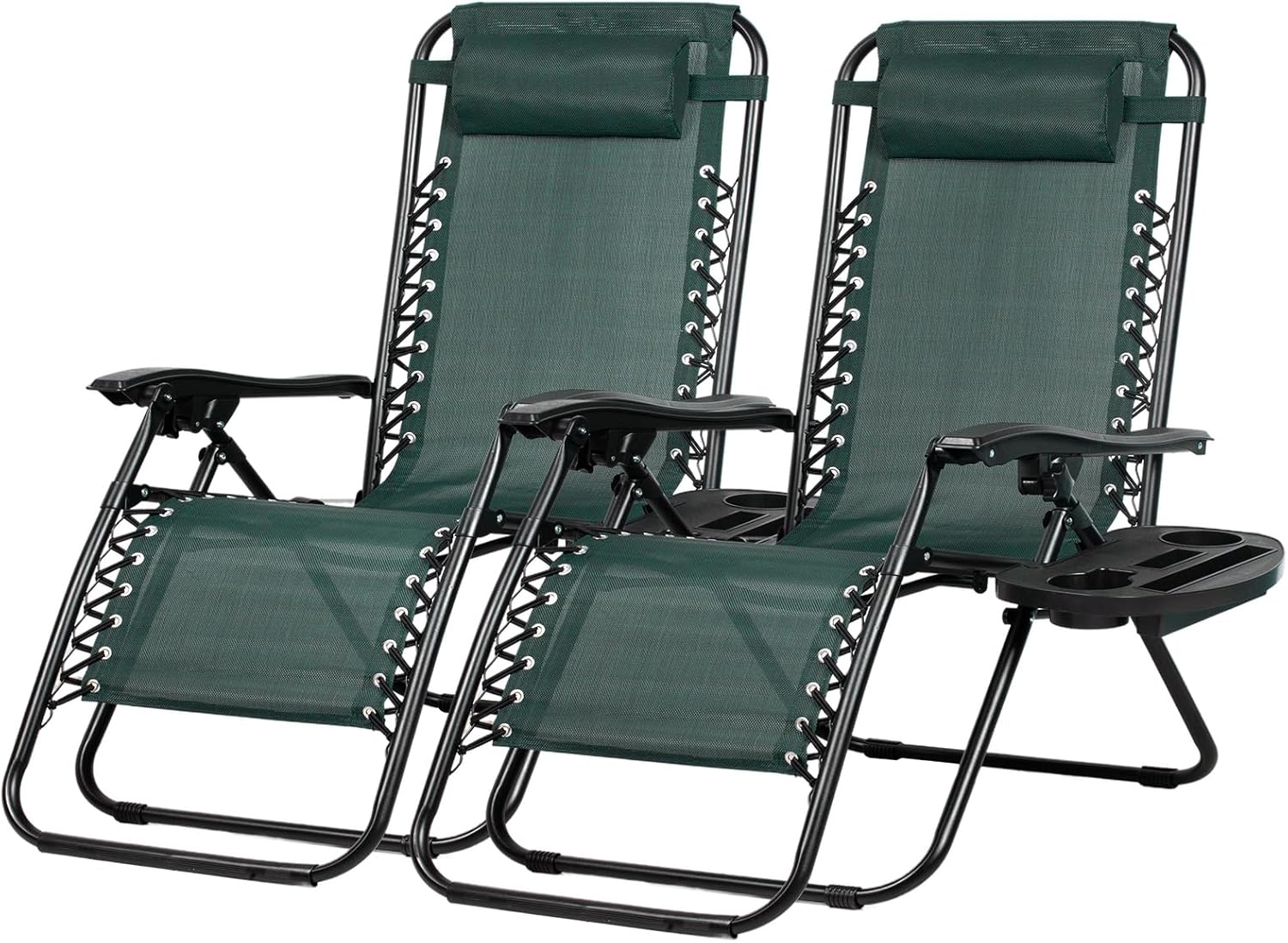 Nazhura Set of 2 Relaxing Recliners Patio Chairs Adjustable Steel Mesh Zero Gravity Lounge Chair Beach Chairs with Pillow and Cup Holder (Dark Green)