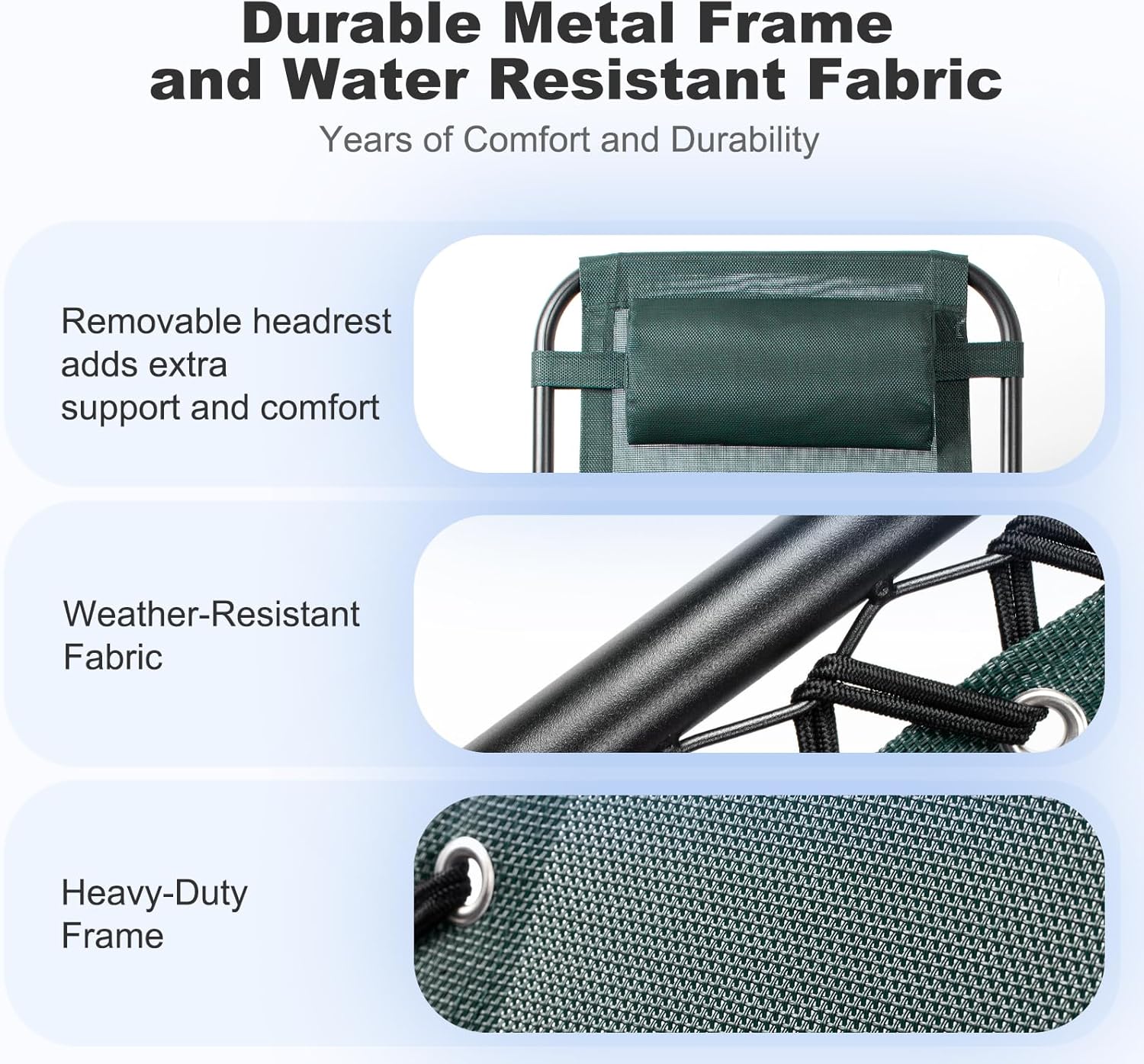- PORTABLE DESIGN: Lightweight and foldable, our Lounge Chairs are easy to take with you on the go, whether you're heading to the beach, park, or your child's next sporting event.
