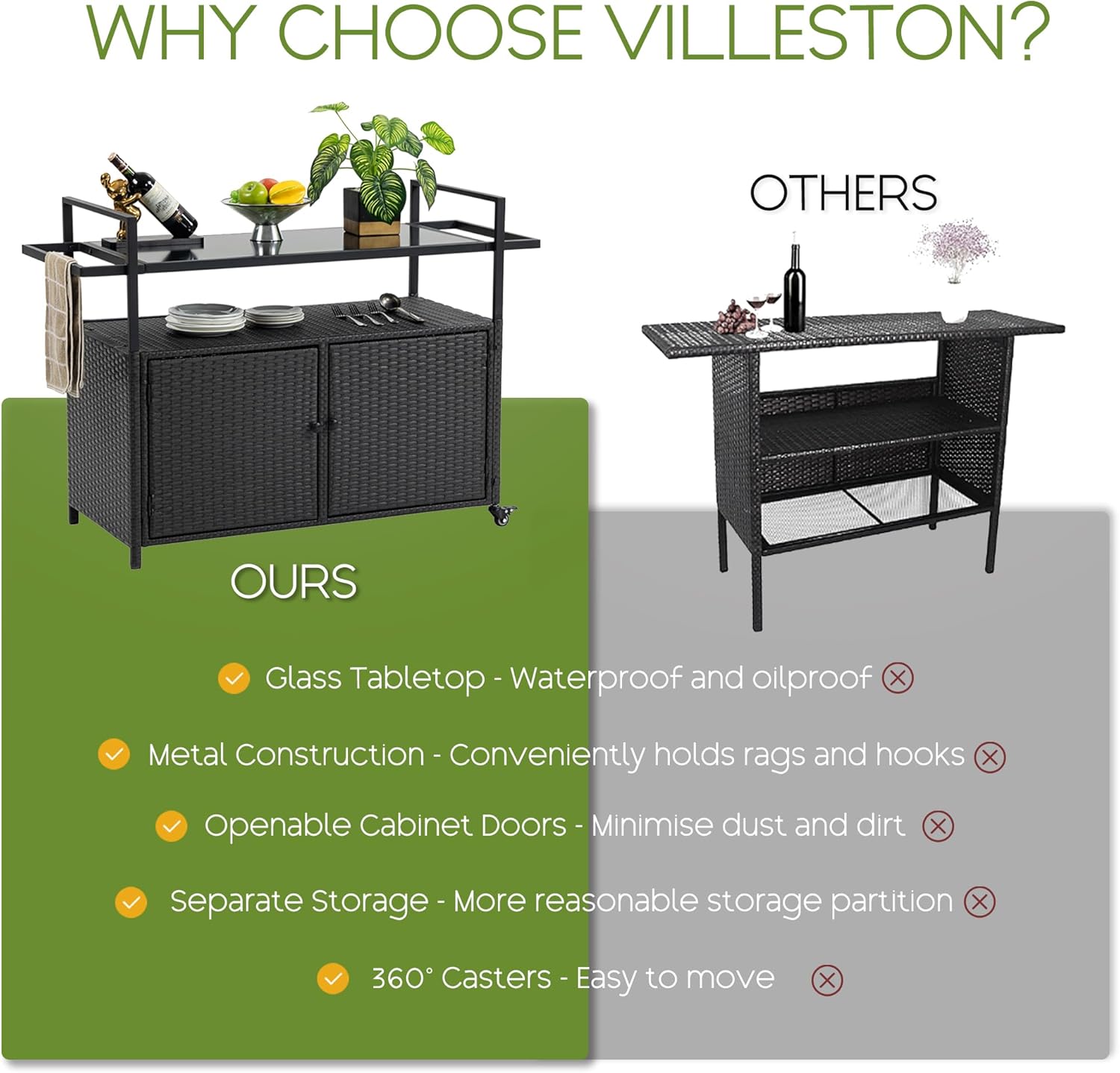 - SMOOTH MOBILITY: The VILLESTON wicker bar cart is designed for effortless movement, featuring two smooth-rolling wheels with a secure locking mechanism. The tabletop handle provides a firm grip, allowing you to maneuver the cart with ease