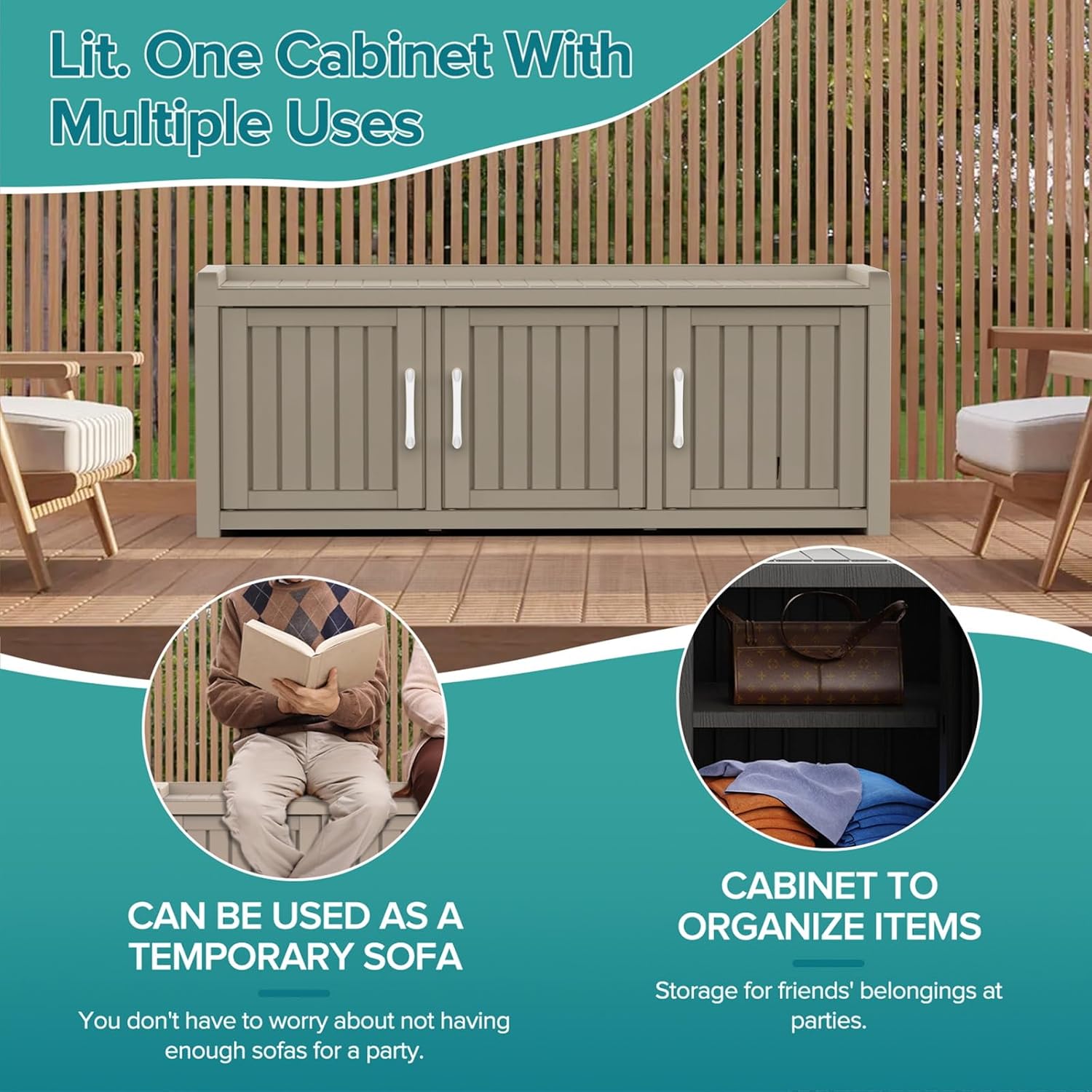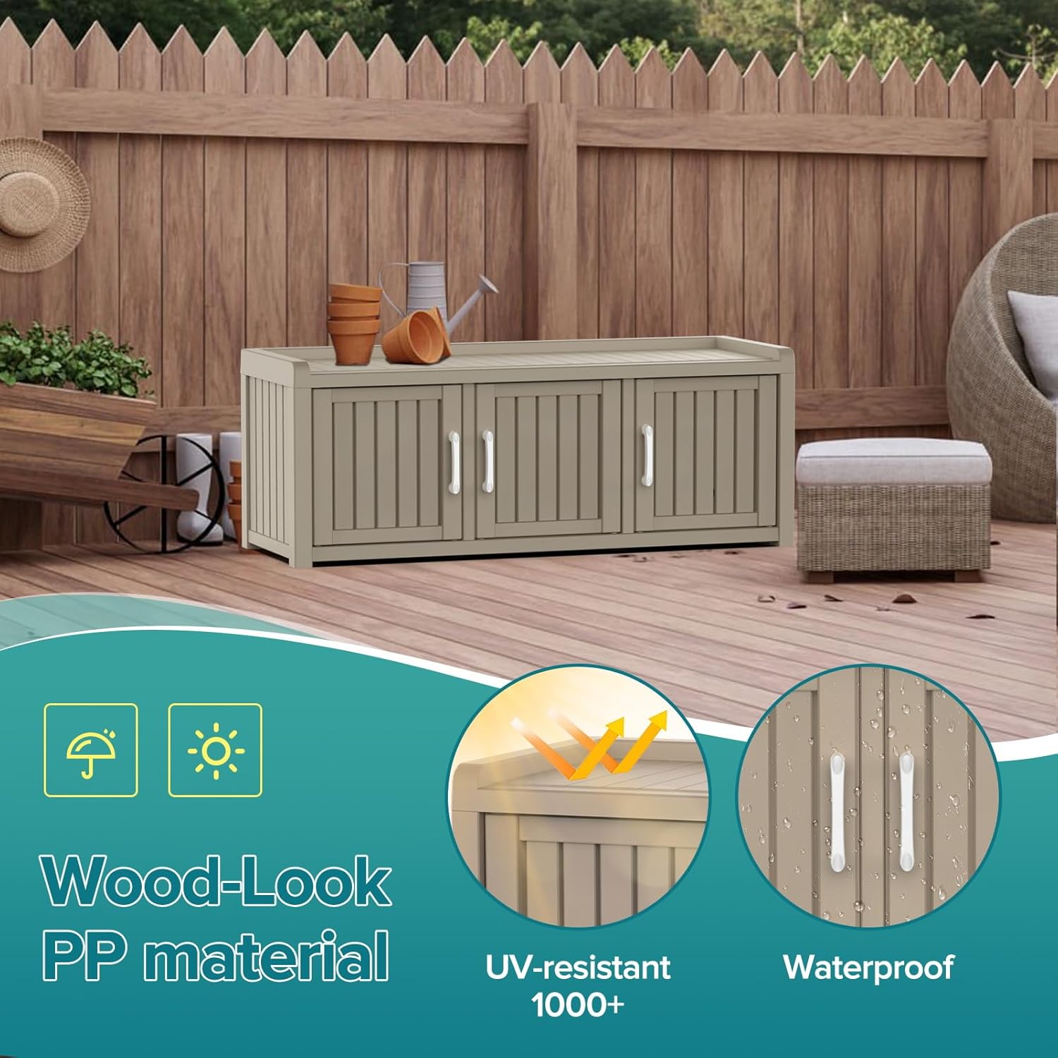 ROJIK Shoe Cabinet Waterproof UV-Resistant,Storage Bench Indoor Outdoor with Adjustable Shelves,for Entryway Bedroom,Hallway,Living Room(3 Door,Grey)