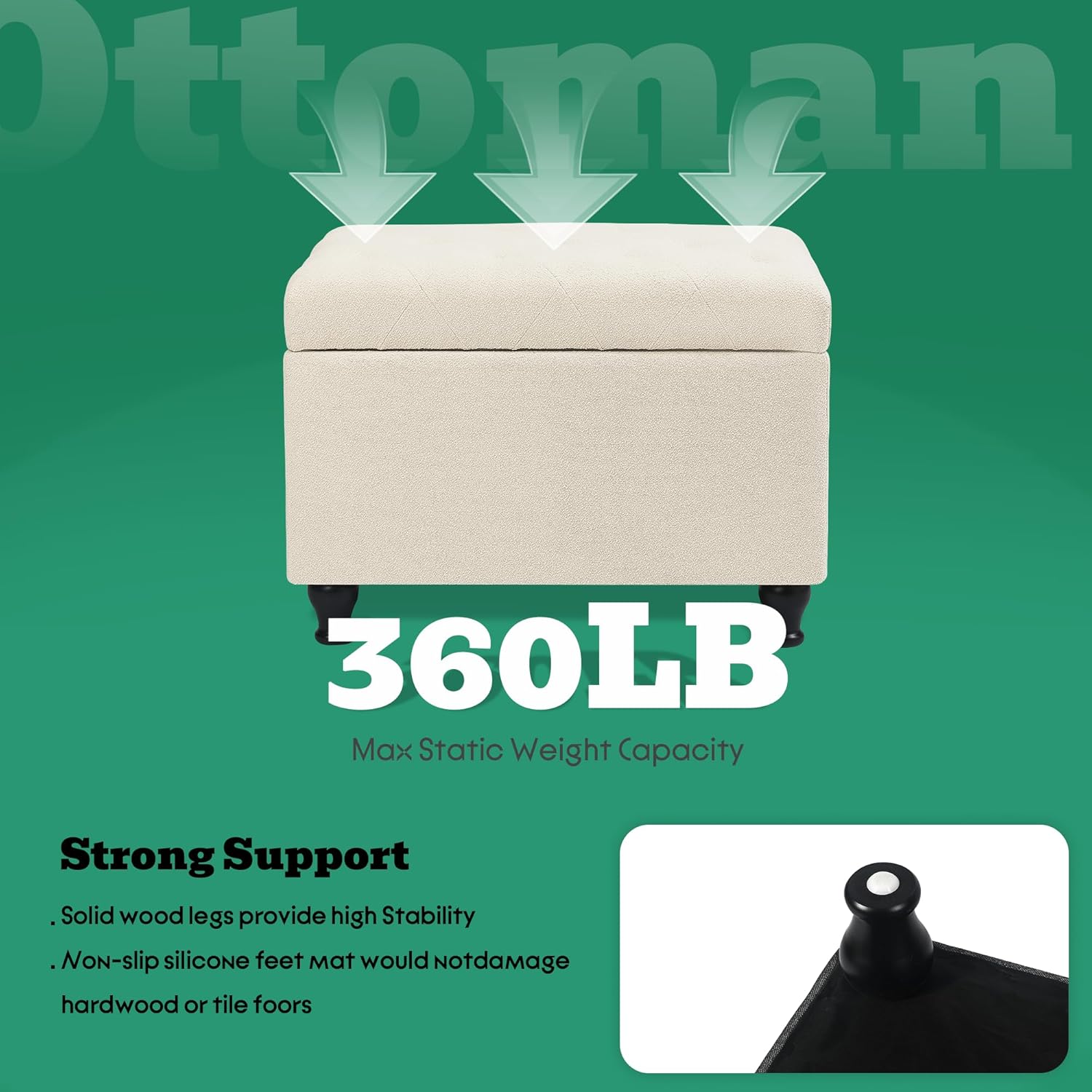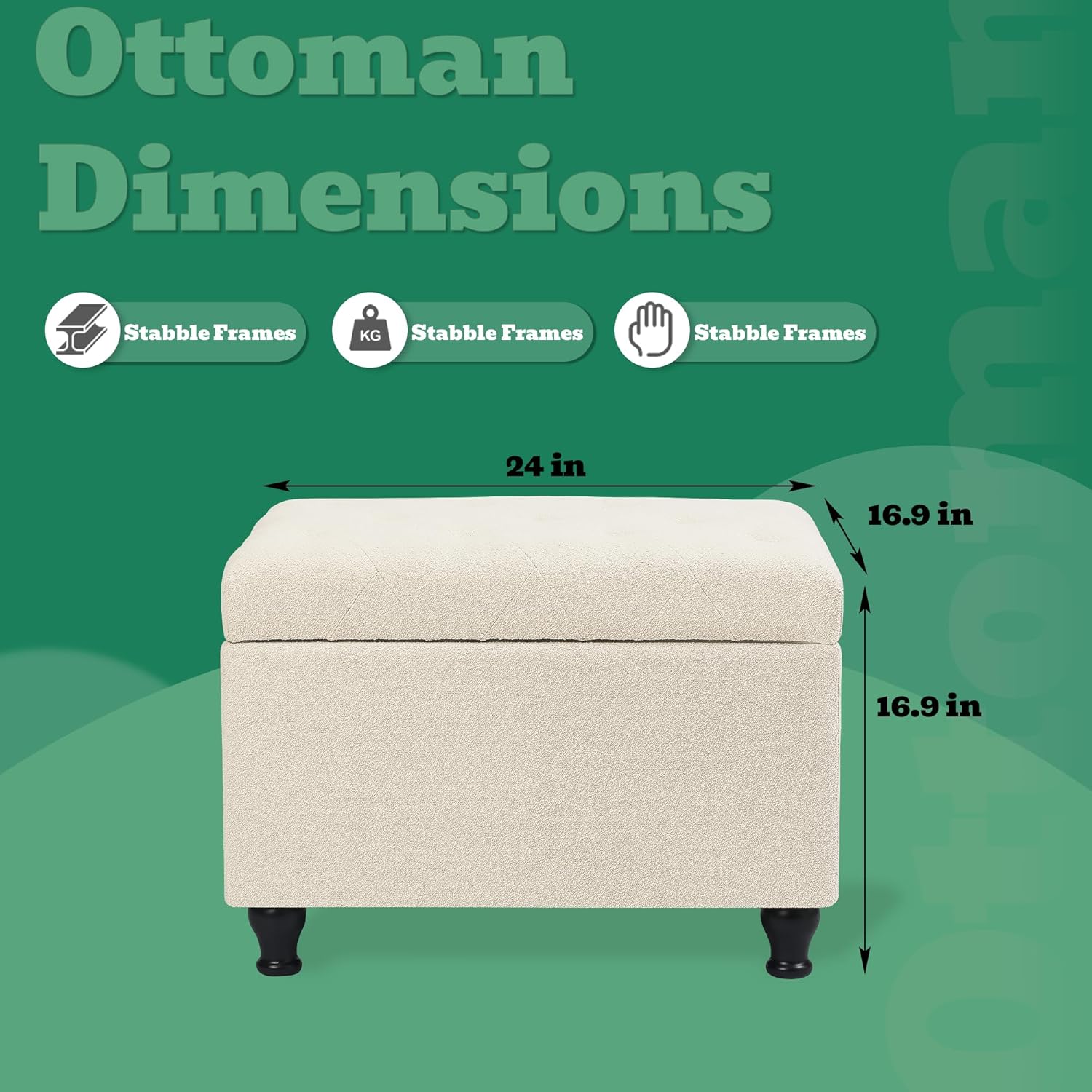 - 【Product Dimension】–Crafted with meticulous attention to detail, this large storage ottoman bench spans 24.0 inches in length, 16.9 inches in width, and 16.9 inches in height, and a robust 360-pound weight capacity, If you have any questions about the product, please contact us and we will be honor to assist you.