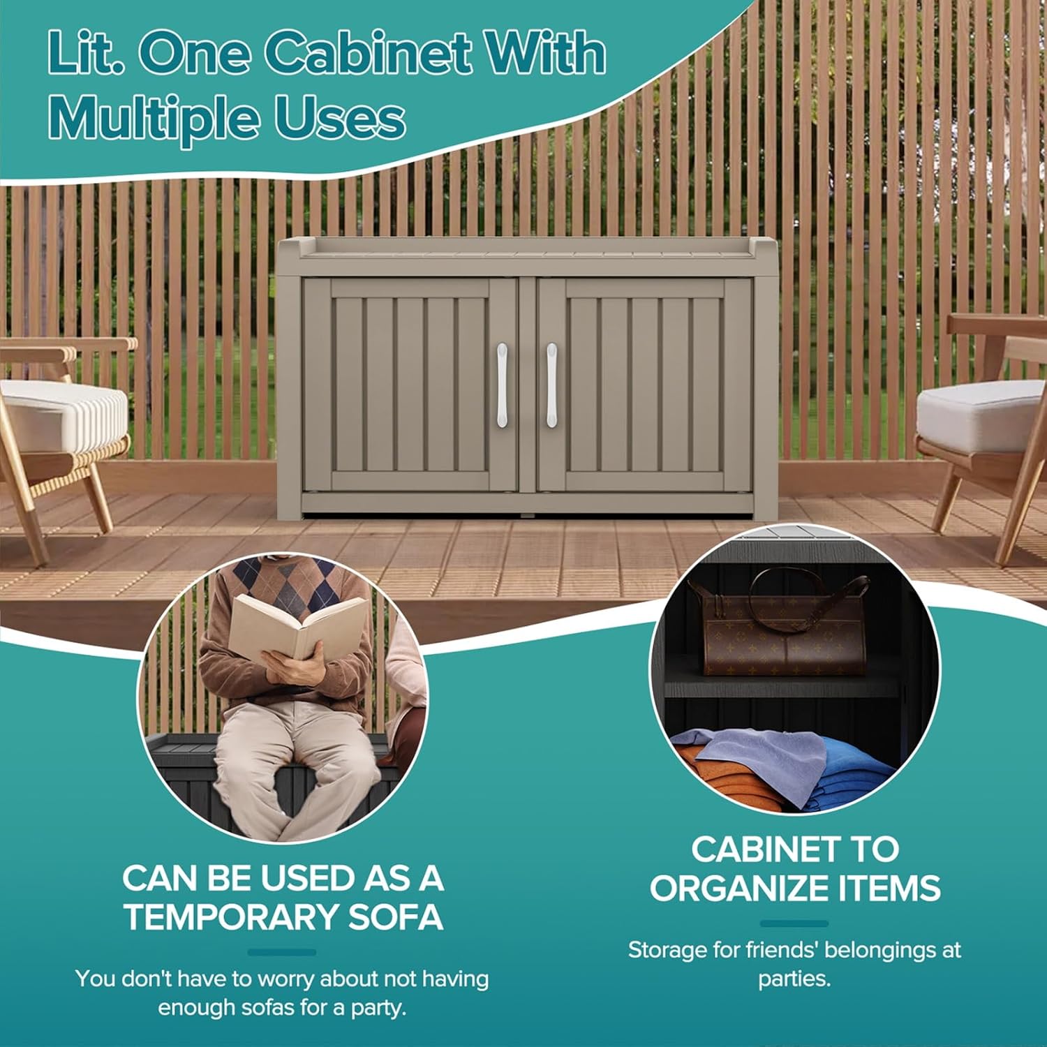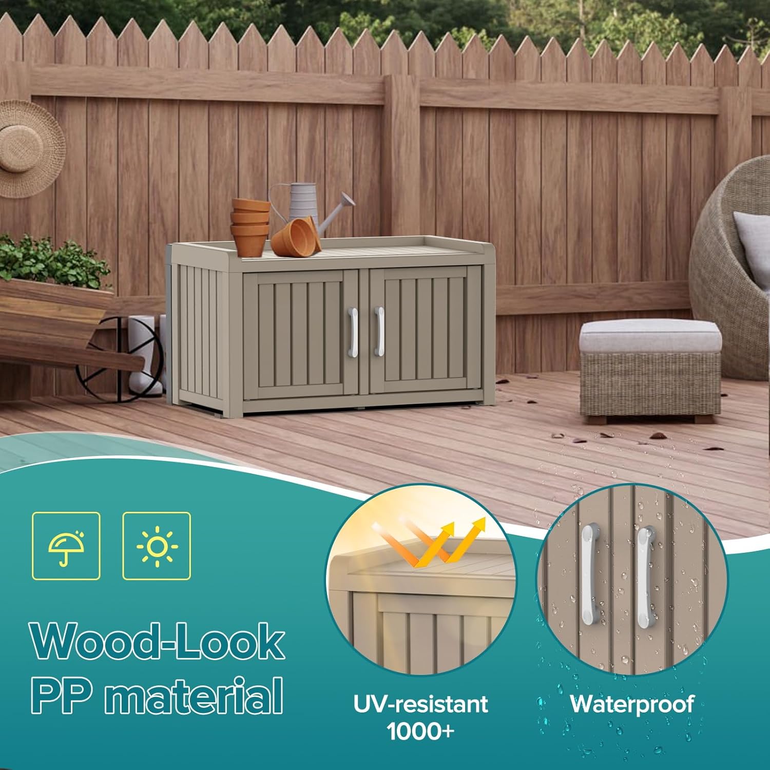 ROJIK Shoe Cabinet Waterproof UV-Resistant,Storage Bench Indoor Outdoor with Adjustable Shelves,for Entryway Bedroom,Hallway,Living Room(Double Door,Grey)