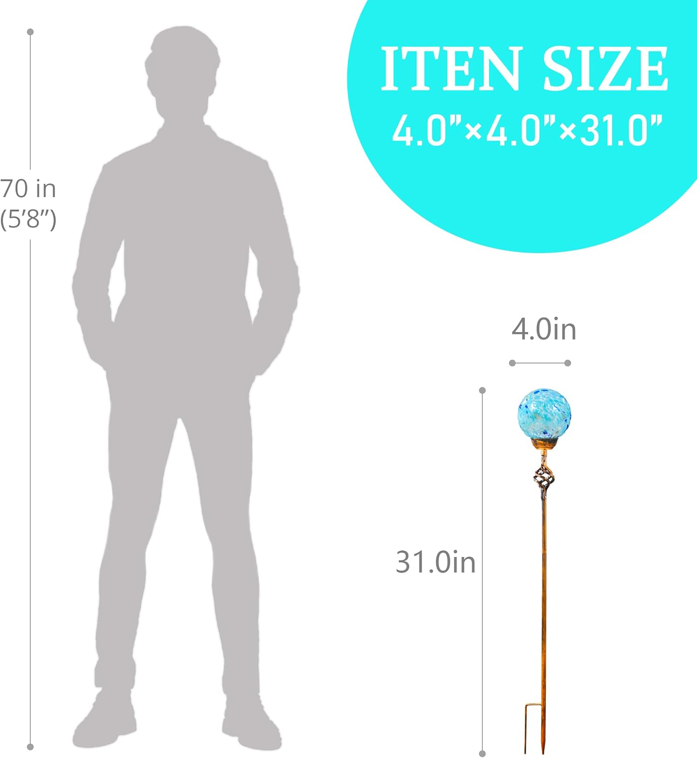 Garden Solar Lights, Decorative LED Honeycomb Glass Ball Garden Stake, Glass and Metal Outdoor Decoration, 4 x 31 Inch (Light Blue)