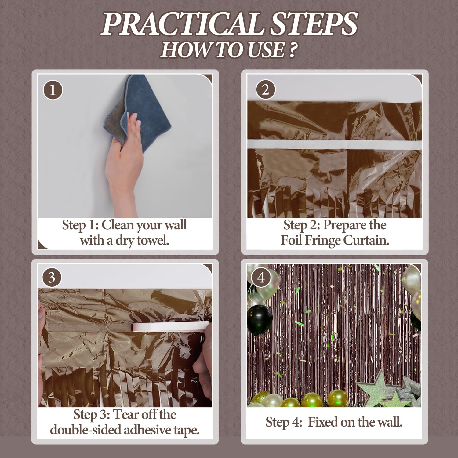 3 Pack Foil Fringe Backdrop - Brown Shiny Tinsel Curtains for Party Decoration/Photo Booth Props - 3.3x8.2 FT Metallic Foil Backdrop for Birthday, Wedding, Graduation, Christmas.