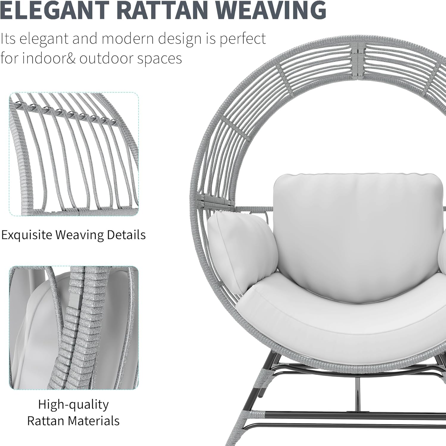 Egg Chair Outdoor Indoor, Oversized Rattan Chair with Thicken Cushion, 350LBS Capacity Wicker Patio Lounge Chair, Basket Chair for Living Room Balcony Porch Backyard, Grey/Light Grey