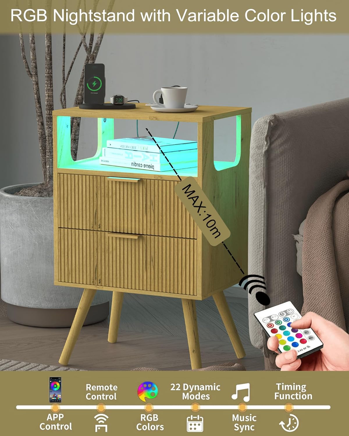 - Embrace the modern touch: A classic white vertically textured faucet, this nightstand gives off a modern touch in your bedroom. With a row insert makes it more practical, the atmosphere lamp is a good addition to the fun of life, it can also be used as a side table or coffee table for the whole family to attract attention, adding elegance to family life.